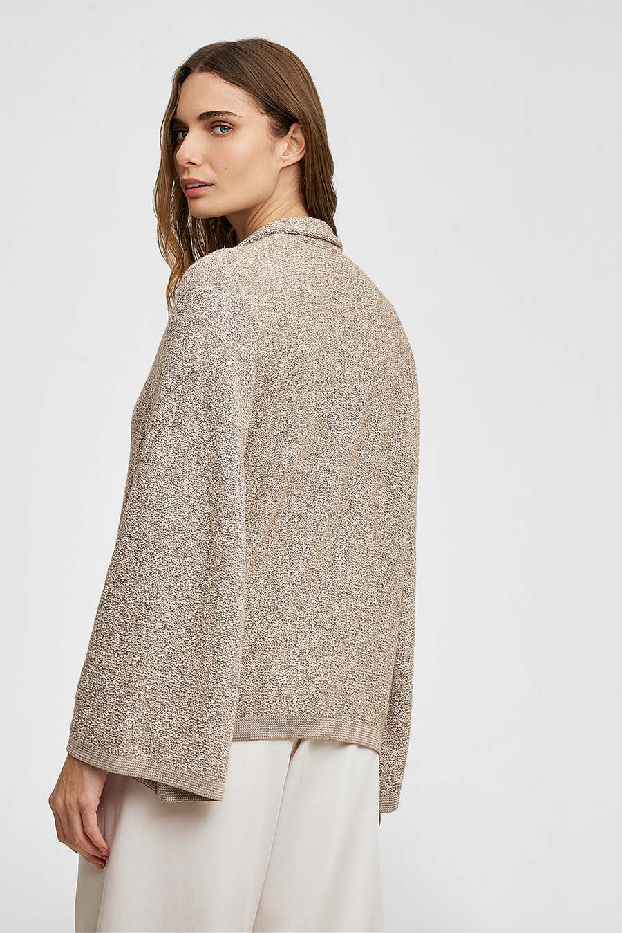 Light and soft, this garment is particularly flattering, due to its relaxed silhouette and unique fall. A piece capable of adapting perfectly to your style. It has two buttons that allow the Weave cardigan to cross in the front. Its buttons, each one different, give it a special touch. | Predominant material: Cotton & Baby Alpaca