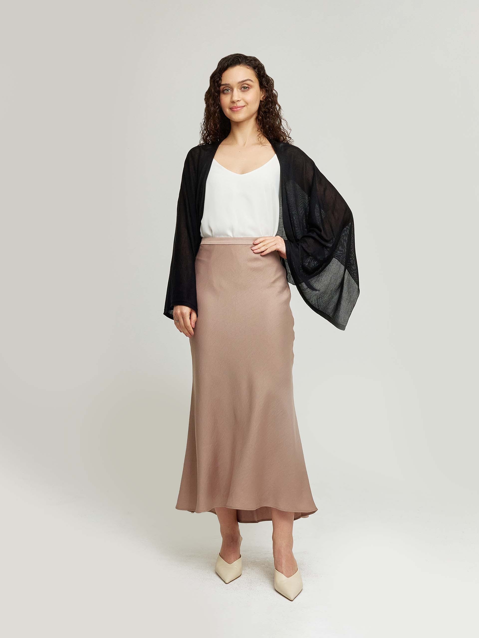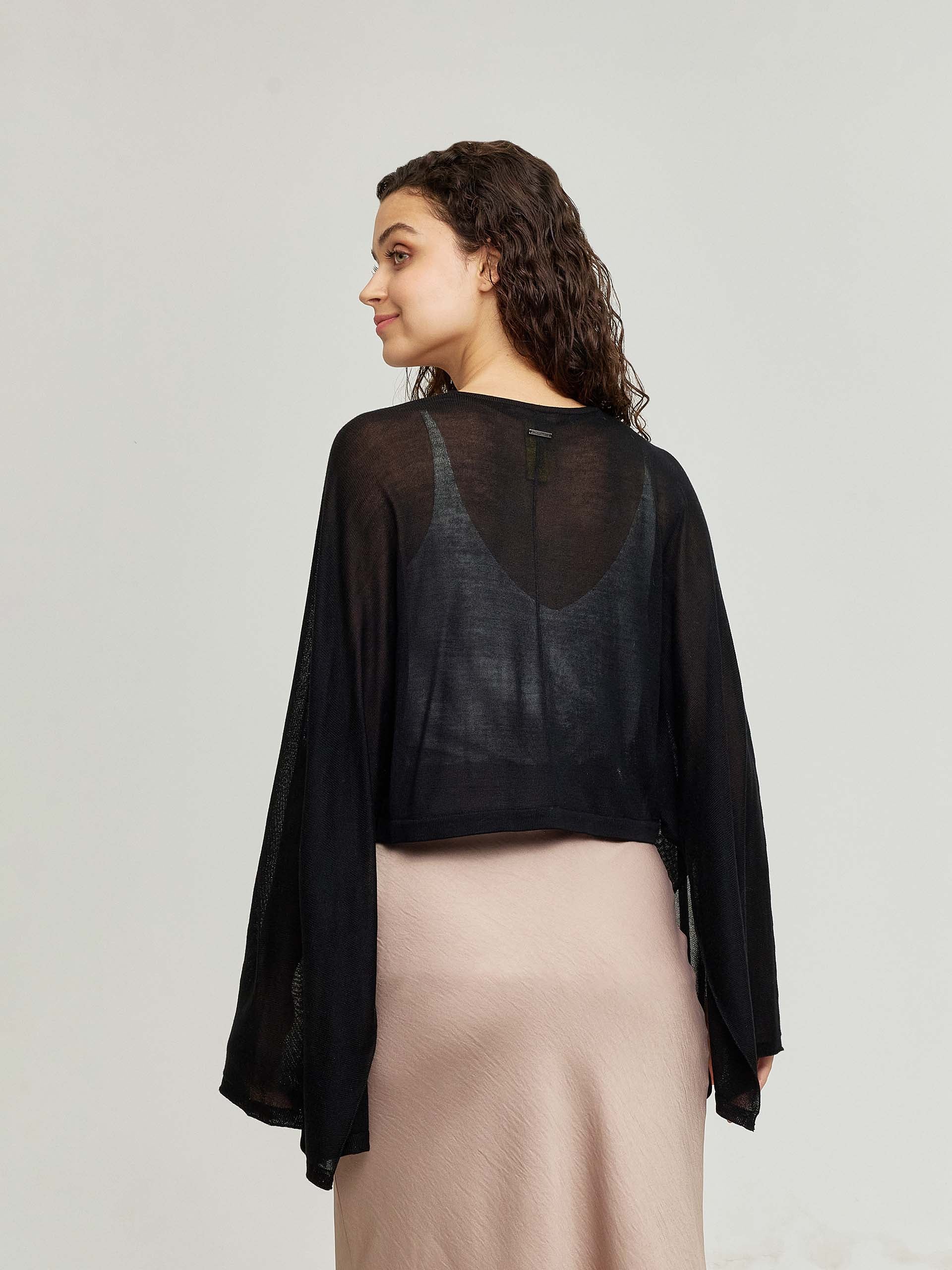 Wide-sleeved cardigan, made of 100% silk, which also offers the ideal comfort and freshness in any season. Its design makes it a unique garment. Available in two beautiful, warm and combinable colors. Wharton is the ideal piece to wear it in special moments. | Predominant material: Silk