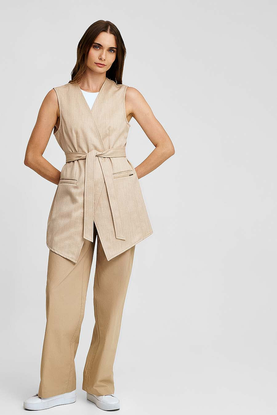 Vest made of baby alpaca and wool. It has a belt that gives it a special touch. Our Wise vest is a garment that stands out for the ease with which it can be combined, for the cut and for its special details in the crossing and pockets. It has the different and modern touch that you are looking for this season. | Predominant material: Wool & Baby Alpaca