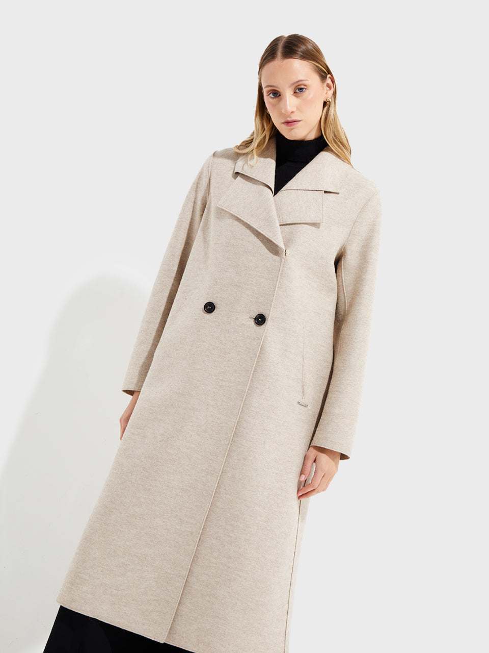 Yamay is a must-have in any closet, as it adapts perfectly to any look. It simplifies your closet while expanding your options, offering you multiple styling possibilities. With its elegant double-layered collar, practical pockets and cross buttons, this coat combines functionality and sophistication. | Material predominante: Alpaca