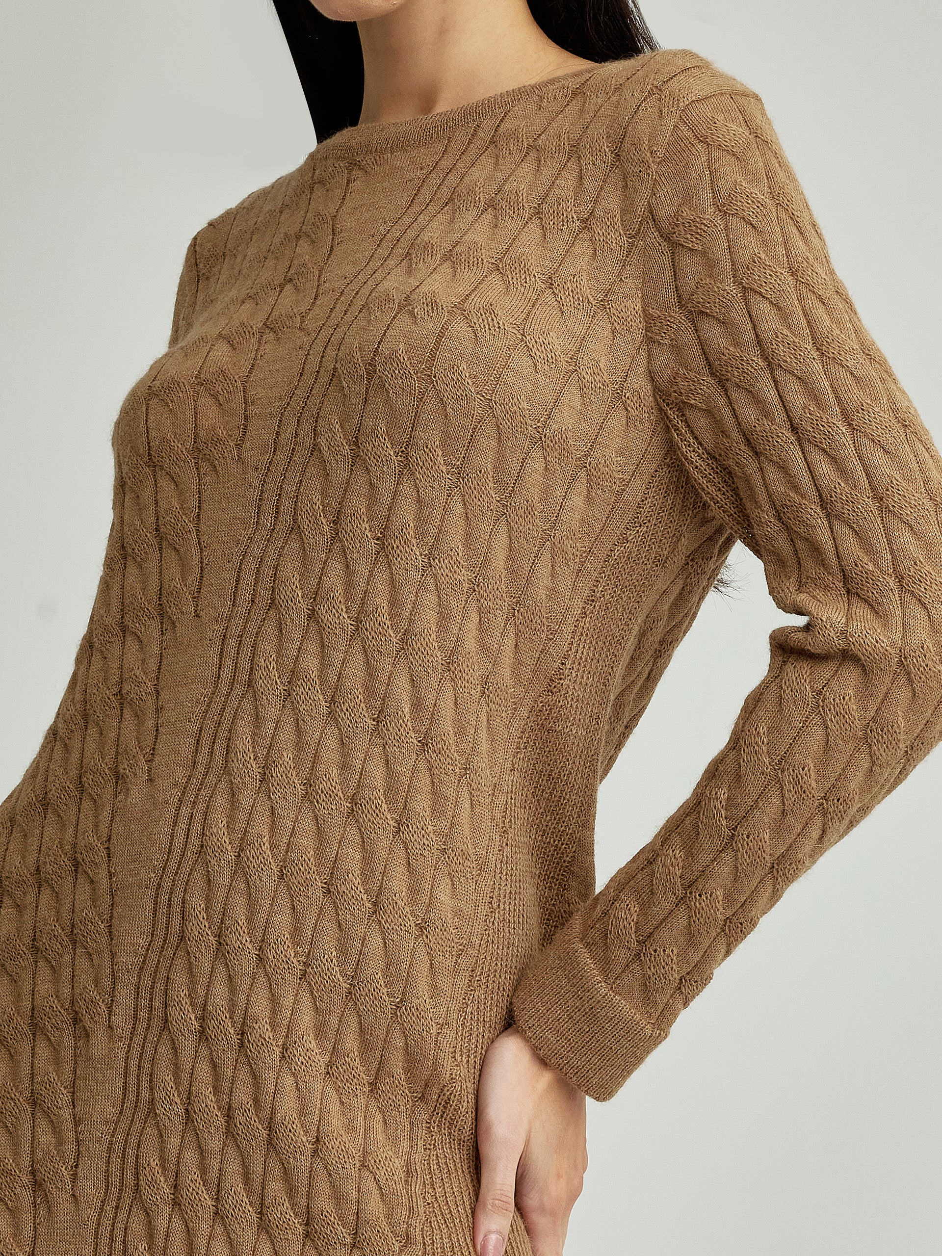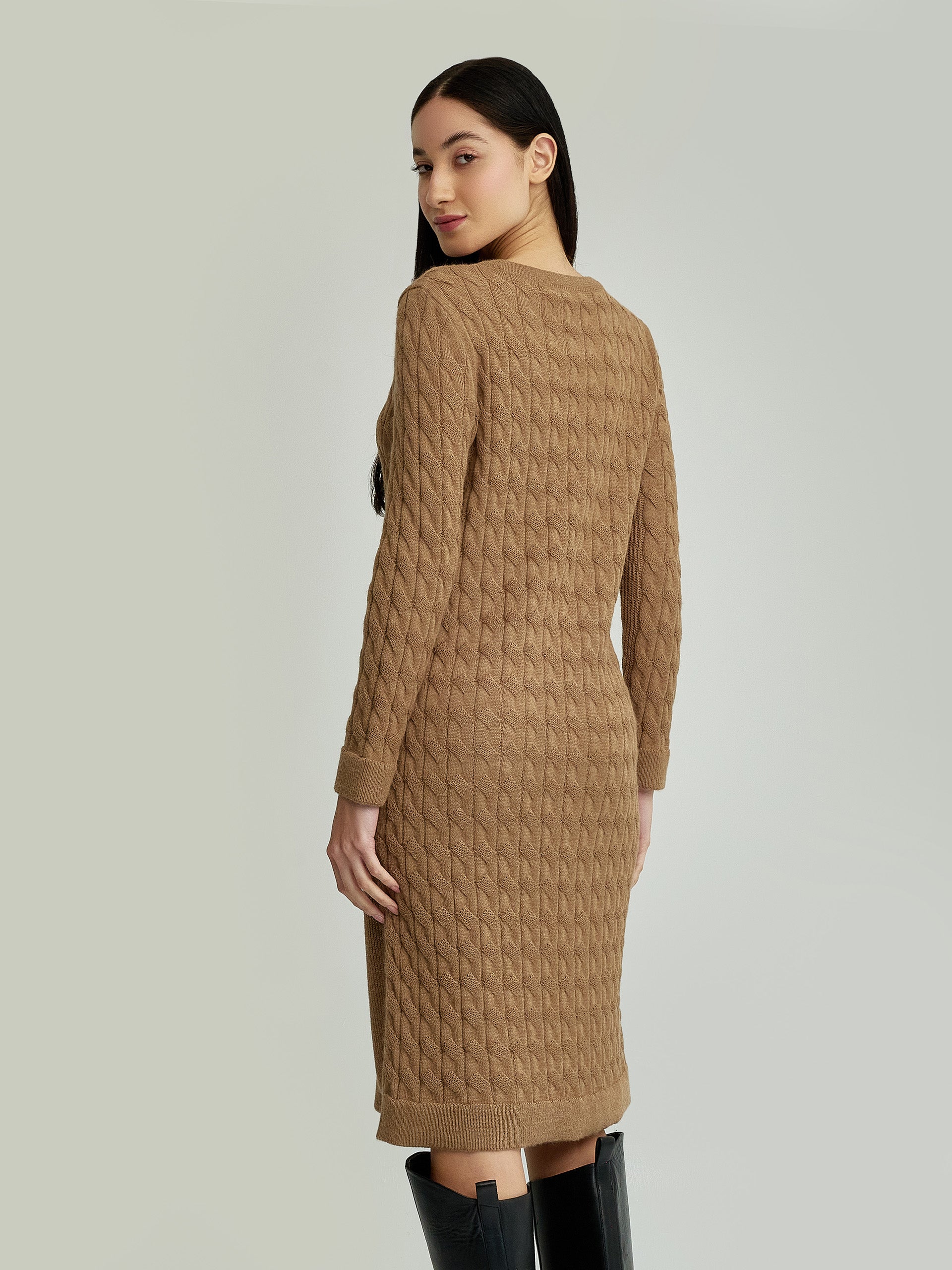 Our long-sleeved Yggy dress in natural color is made of baby alpaca. Slightly narrow and of adequate length, this dress highlights your figure with style and comfort. Its braid design adds a touch of sophistication. This dress is the perfect choice for an elegant look on any occasion. | Predominant material: Baby Alpaca
