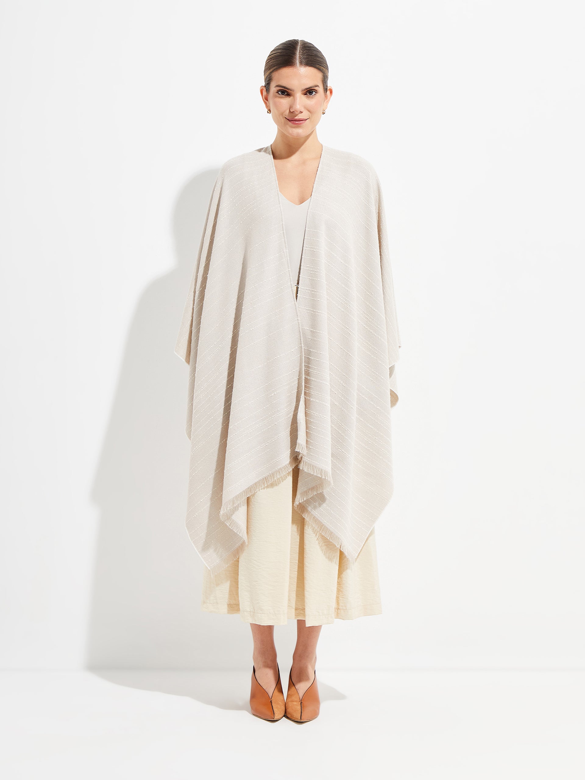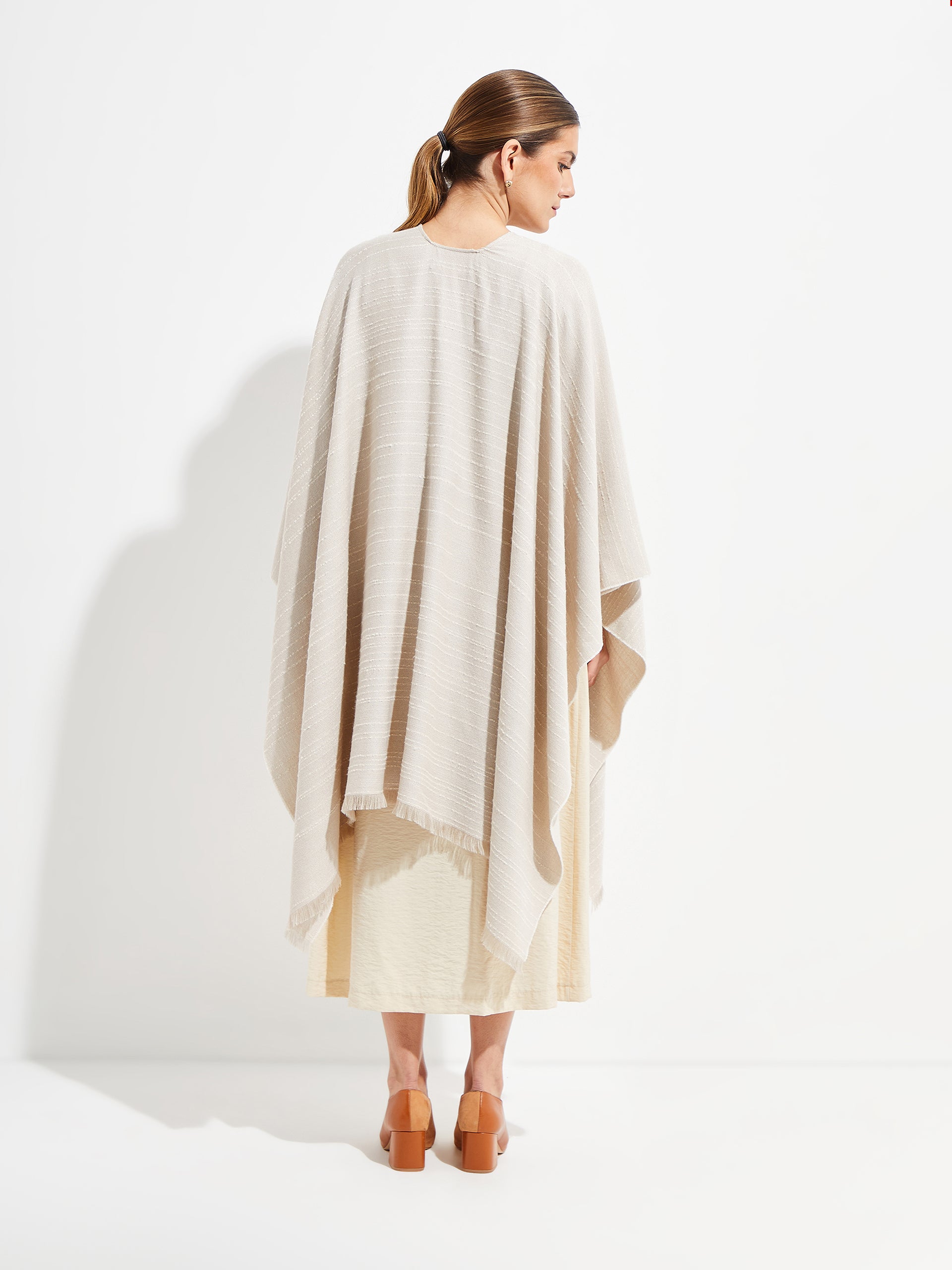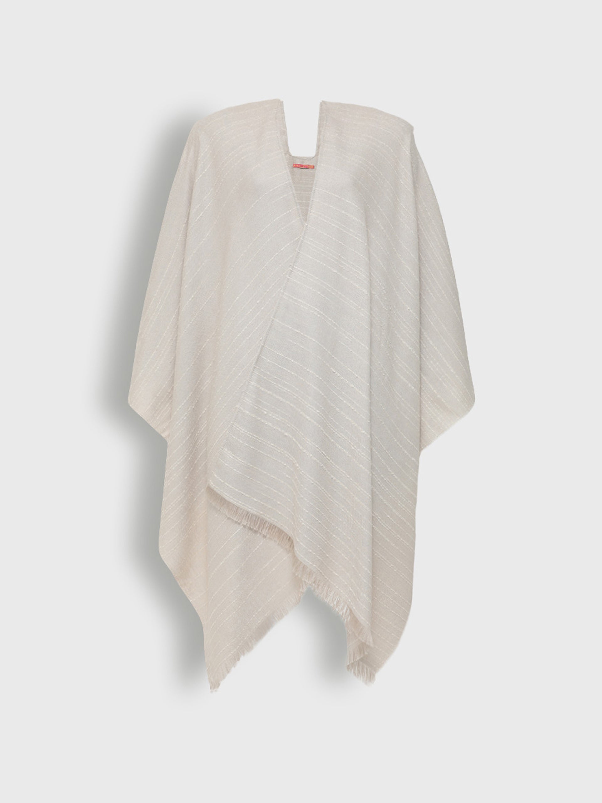 Ygriega is an exclusive cape made of baby alpaca, silk, bamboo and cotton. Its discreet striped design combines elegance and softness, offering a perfect balance between warmth and lightness. The blend of materials provides comfort and freshness, making it ideal for special occasions or day to day with a sophisticated touch. | Predominant material: Cotton
