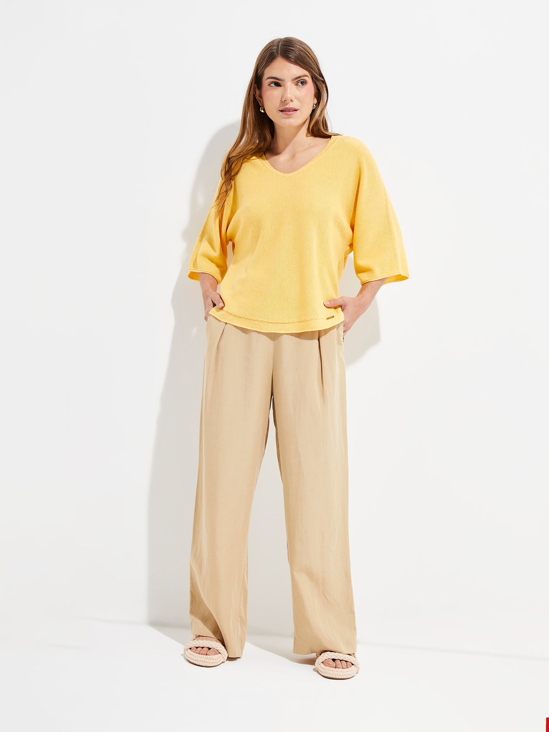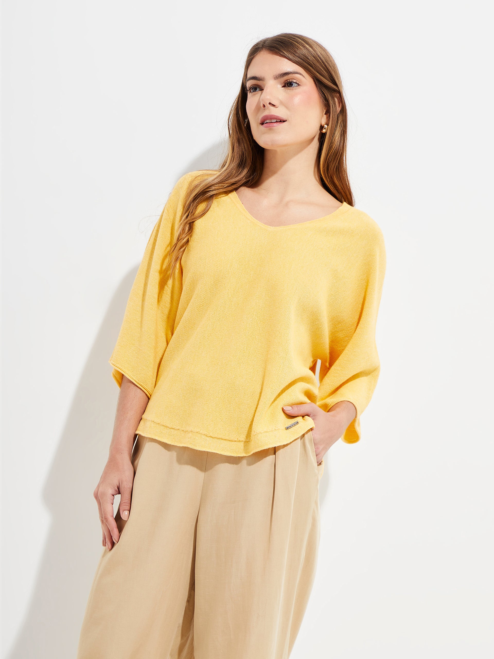 A unique garment with a modern design, the Yolanda sweater is made of organic cotton and baby alpaca. Its finish makes it an ideal item for the season. With a round neckline and three-quarter sleeves, it offers a relaxed silhouette and solid color. Available in two colors. Feel the warmth and softness of the Yolanda sweater, perfect for any occasion. | Predominant material: Cotton