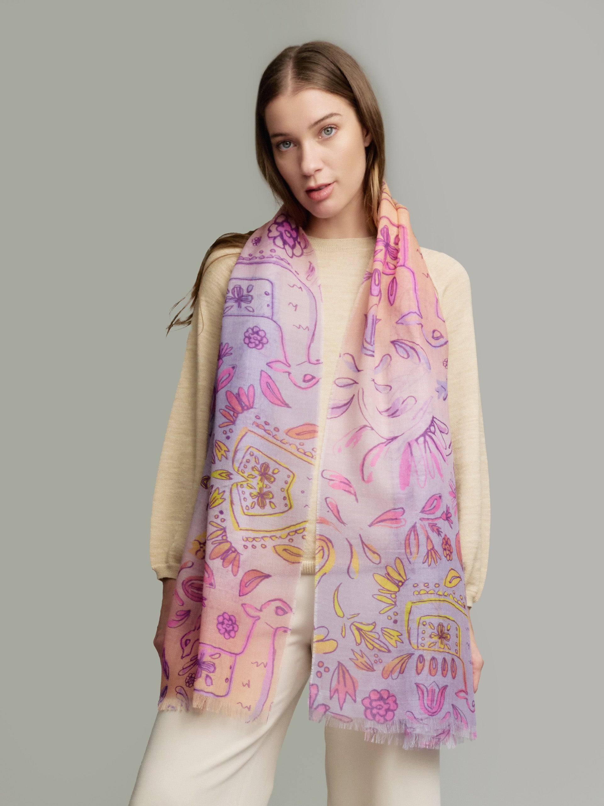 Immerse yourself in the freshness of our Yovela stole. With vivid colors and captivating designs, this accessory is made of baby alpaca and silk, a soft and lightweight combination that gives your skin a unique feel. Perfect for giving a vibrant and colorful touch to your looks, this stole adds style and comfort to your winter wardrobe. | Material predominante: Baby Alpaca
