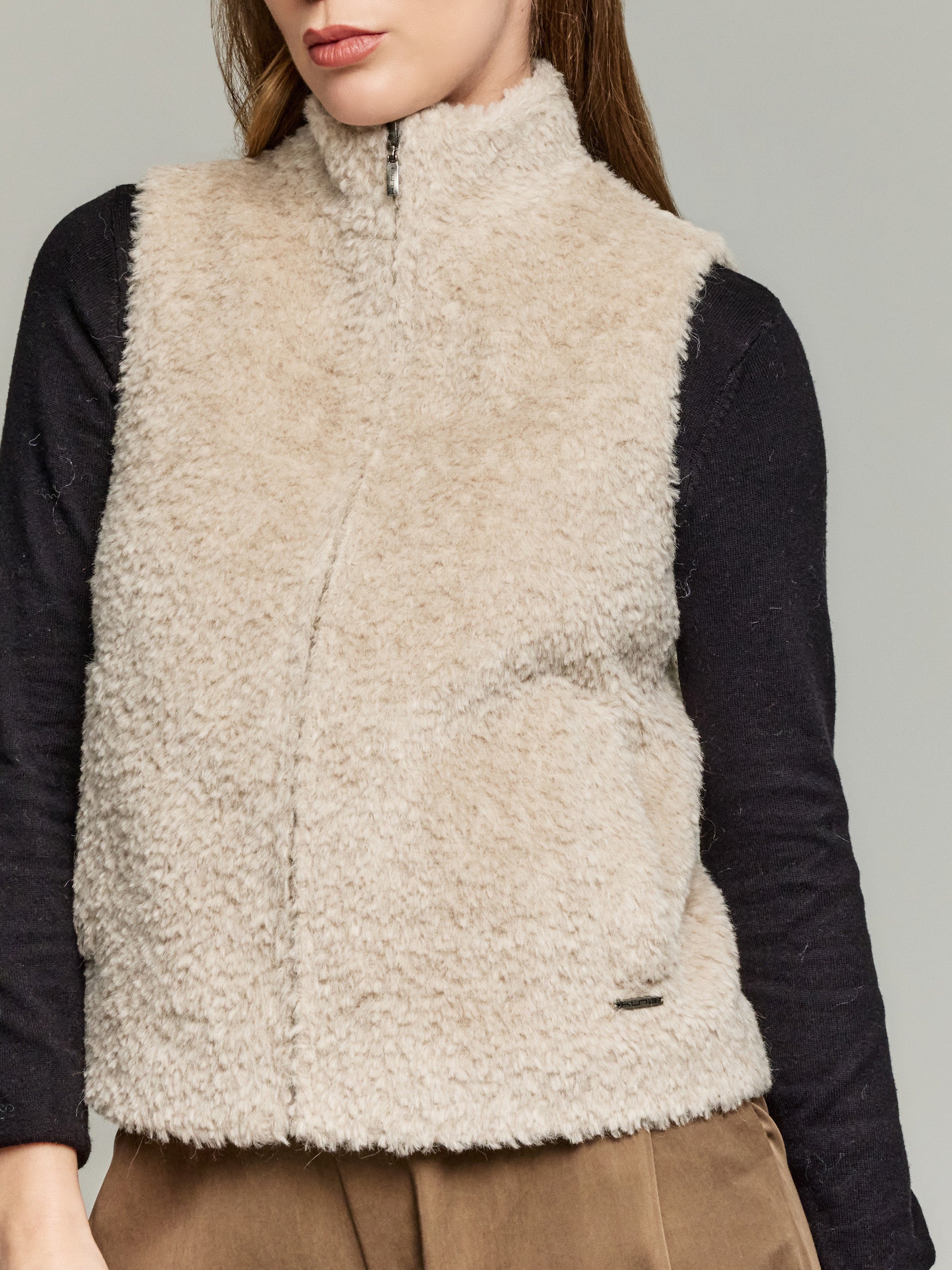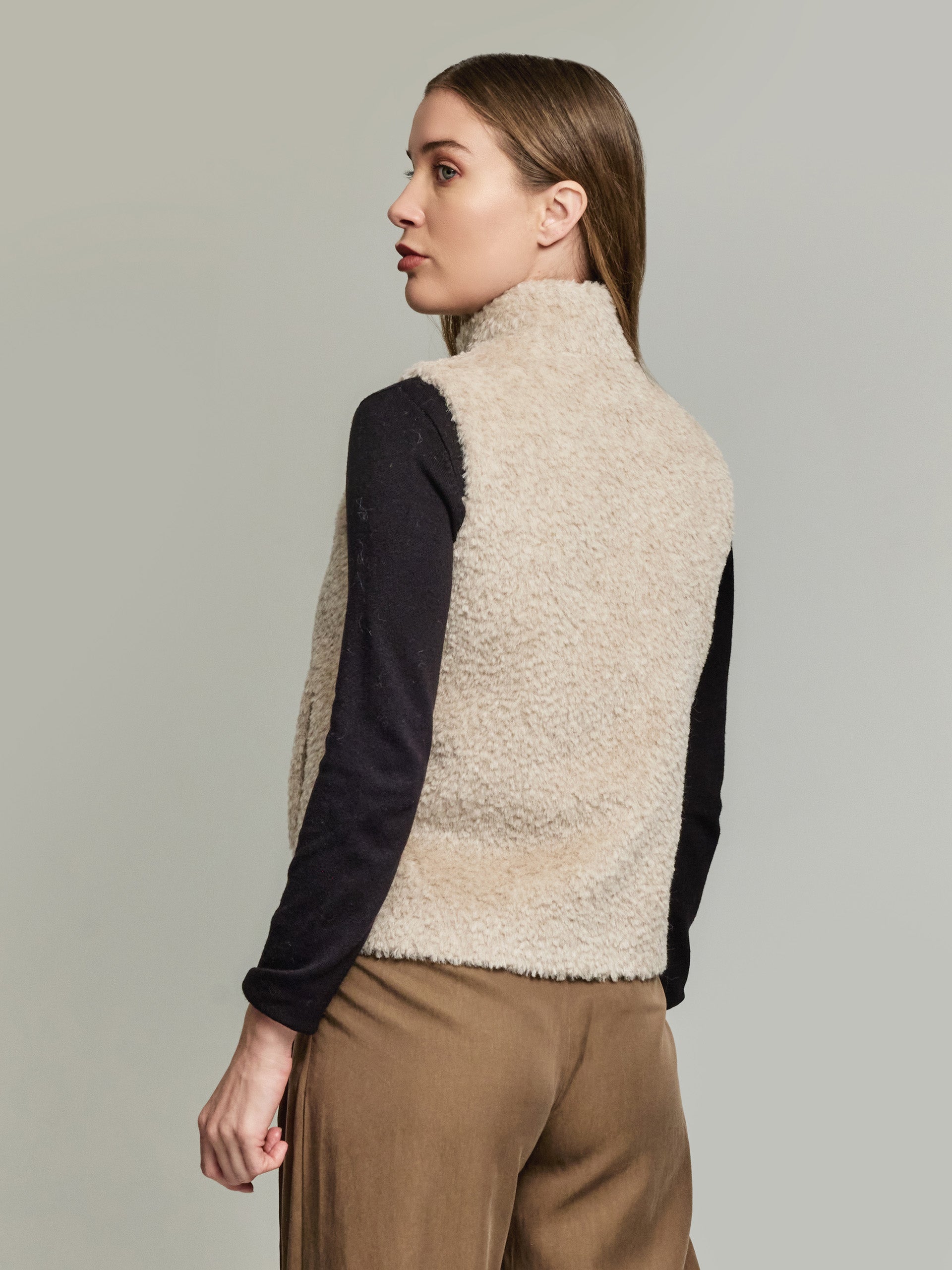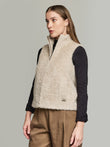 Discover the versatility of the Young reversible vest, with a metal zipper and an elegant high neck. Its unique texture, made of soft Suri alpaca and wool, provides warmth and style. From casual looks to more formal occasions, the Young vest is an essential item that heightens any outfit with its sophistication and modernity. | Material predominante: Alpaca Suri & Wool