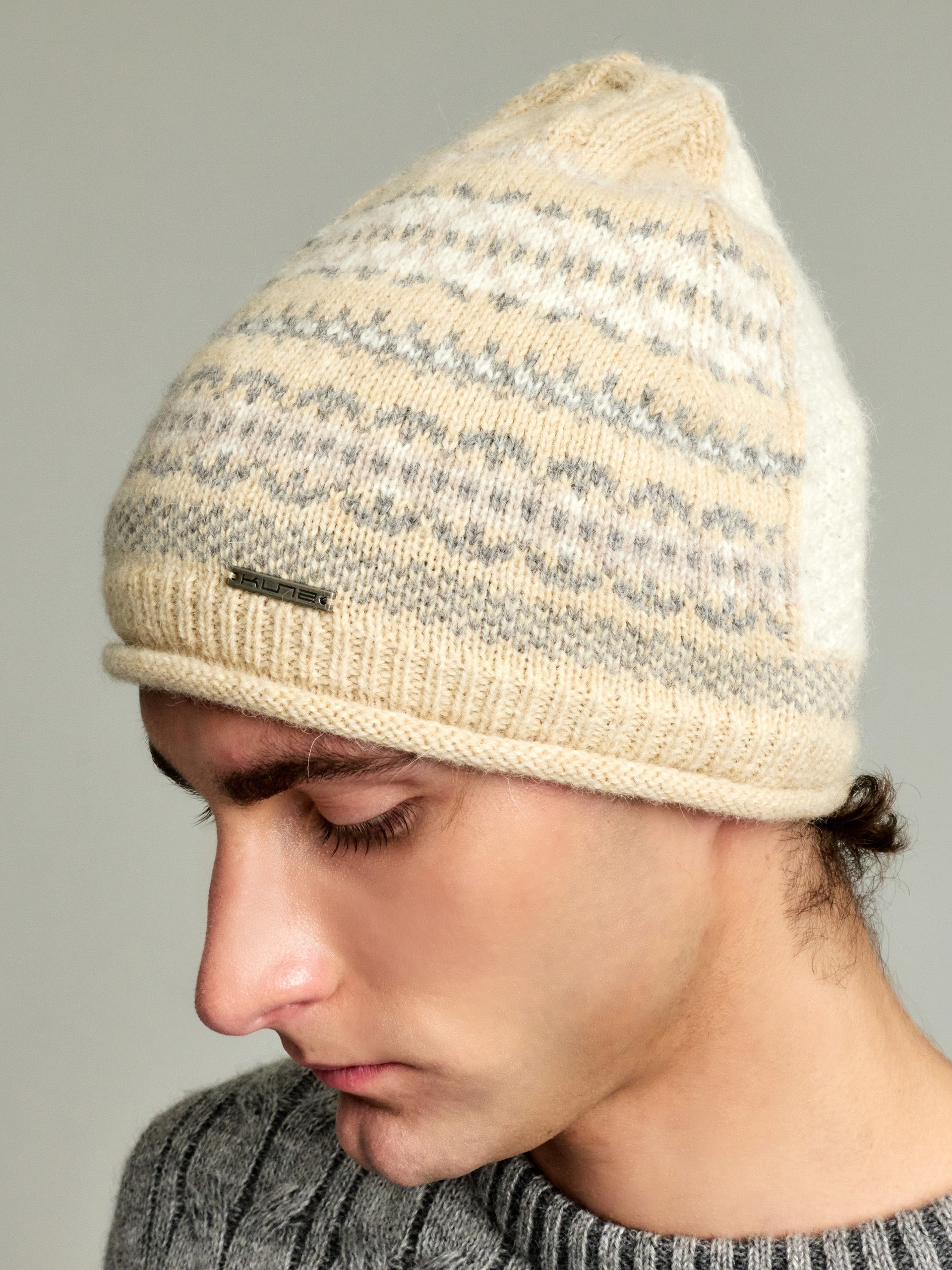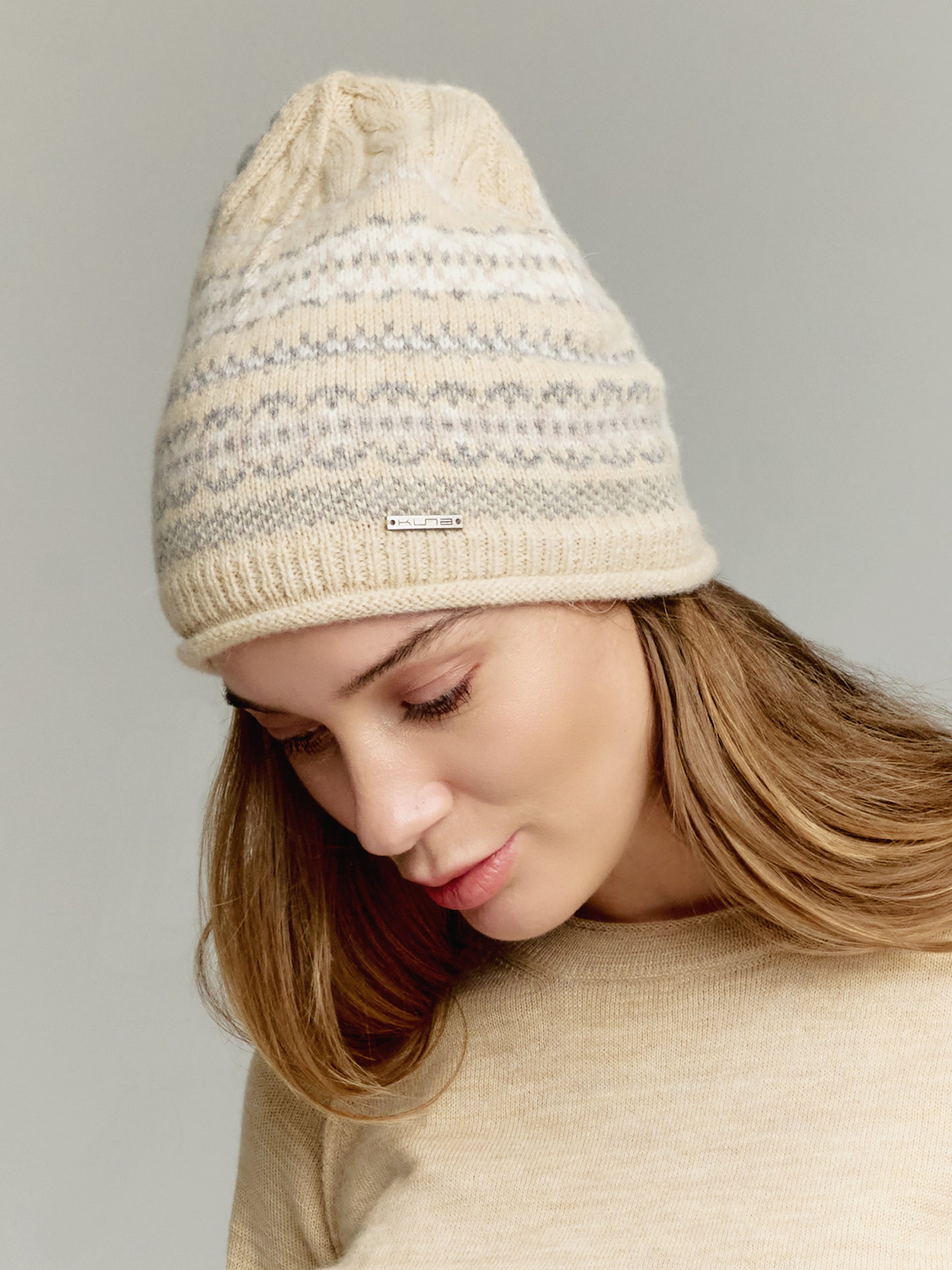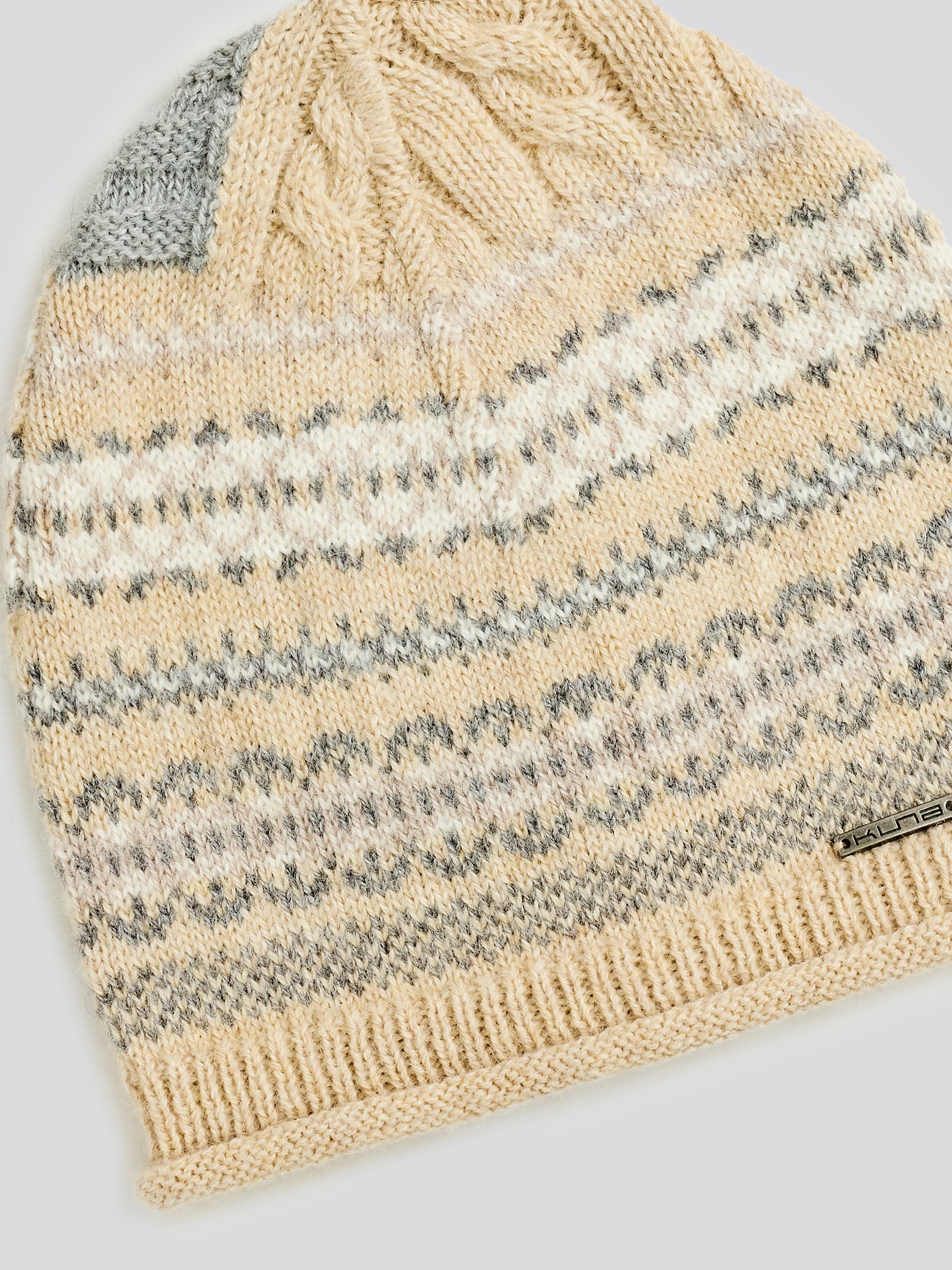 The Yourself knit beanie, made from 100% baby alpaca yarn, offers a warm way to look stylish. Embellished with a warm color combination, it's the perfect accessory to add warmth and elegance to your outfit. Wear it with the matching gloves for a complete outfit. | Material predominante: Baby Alpaca