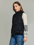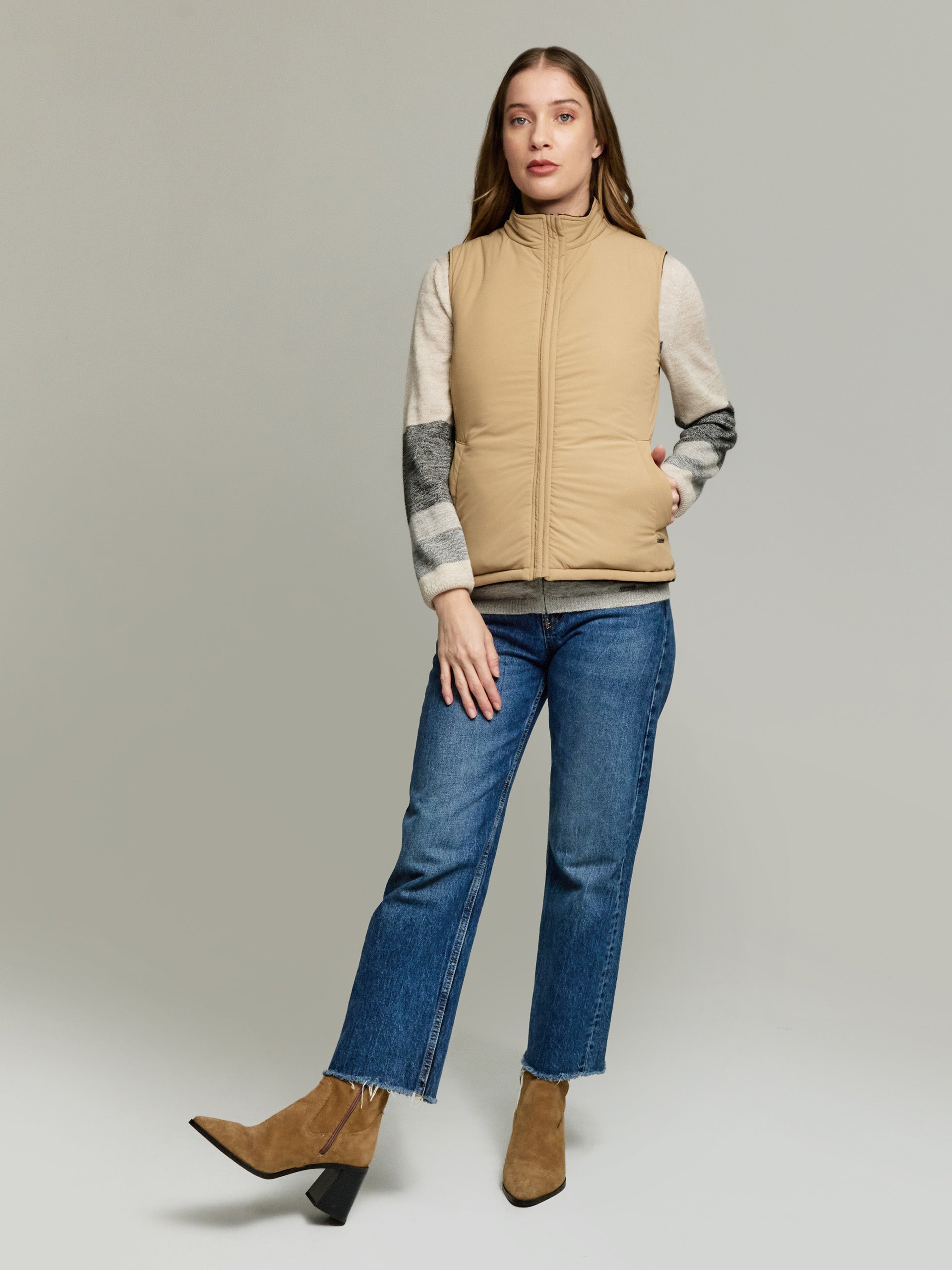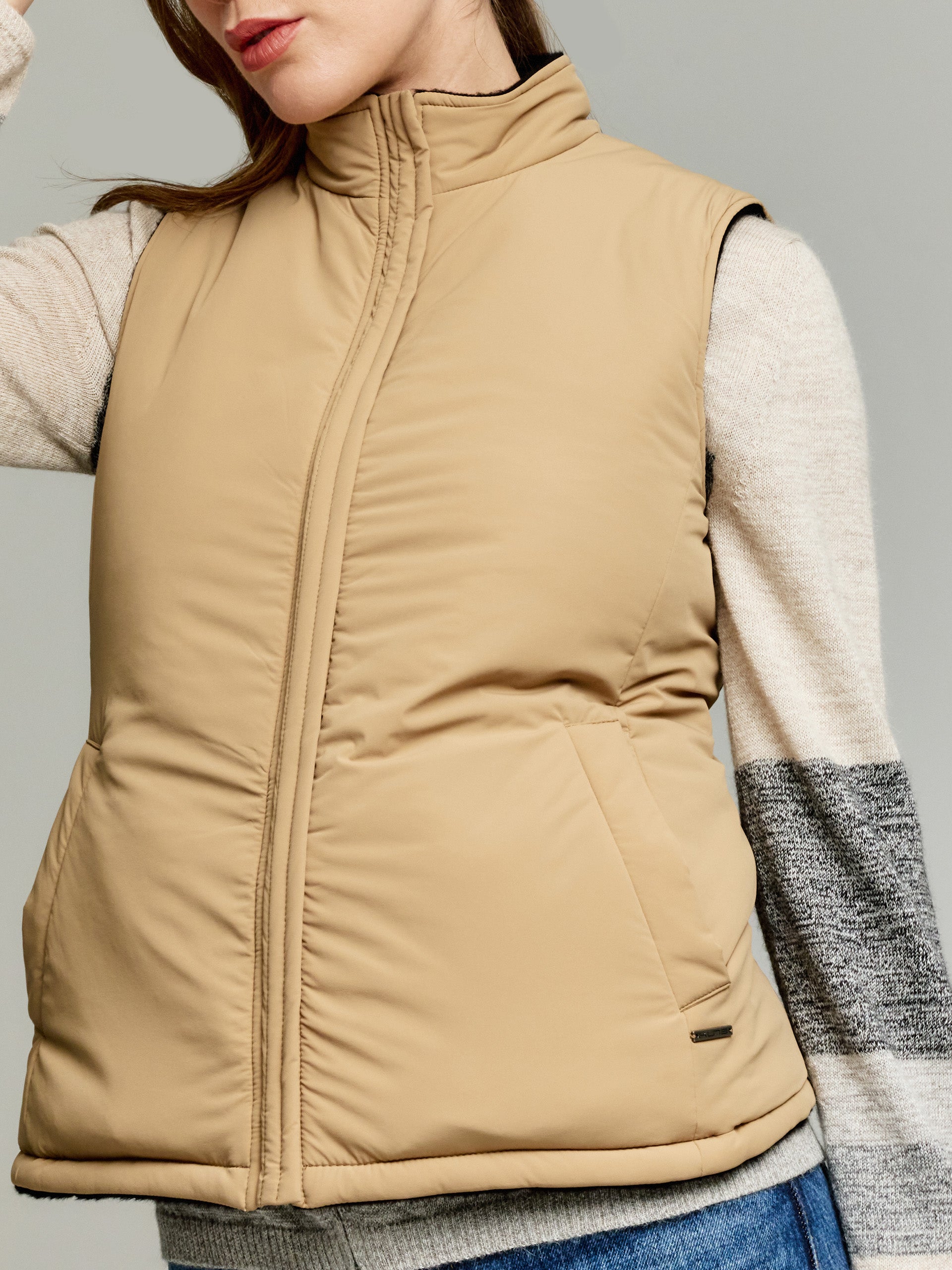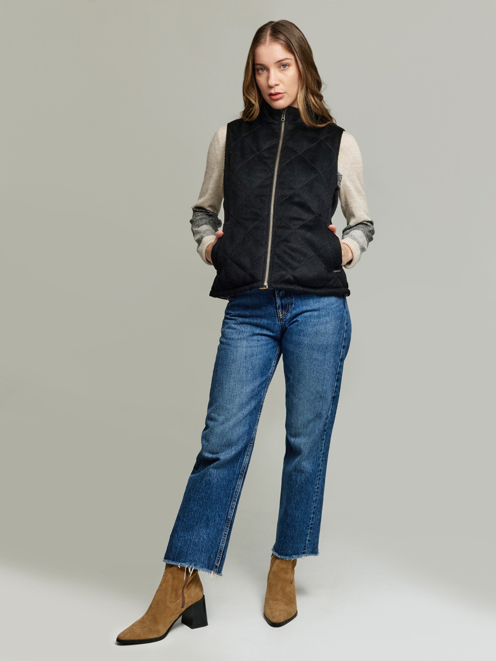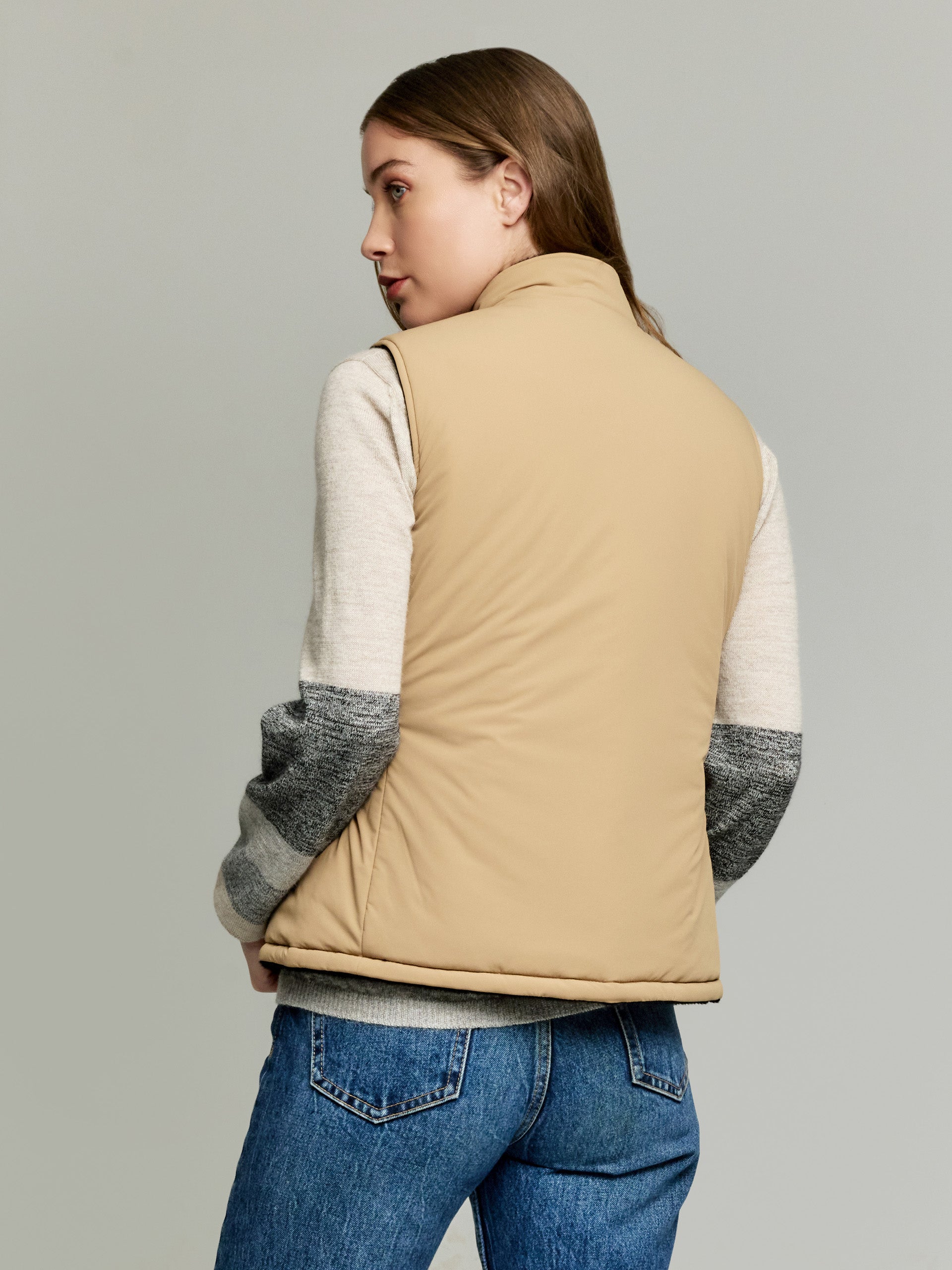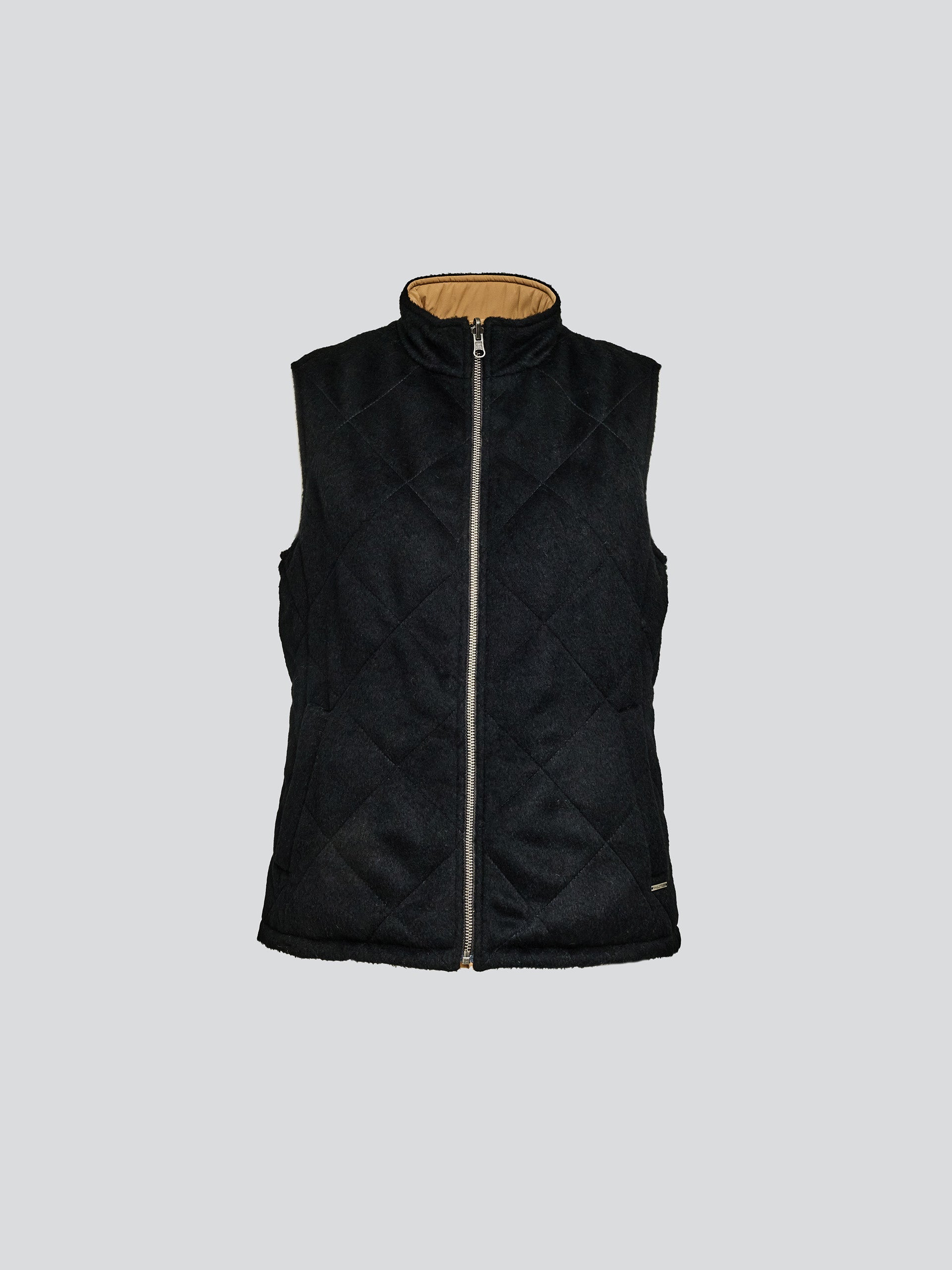 The Ystoria vest embodies functional elegance. Its versatile, reversible design offers dynamic styling options. The unique texture and metal zipper of the high neck add sophistication. This vest is not only a fashion garment, but also a style statement. Masterfully manufactured from a blend of baby alpaca and wool. | Material predominante: Baby Alpaca