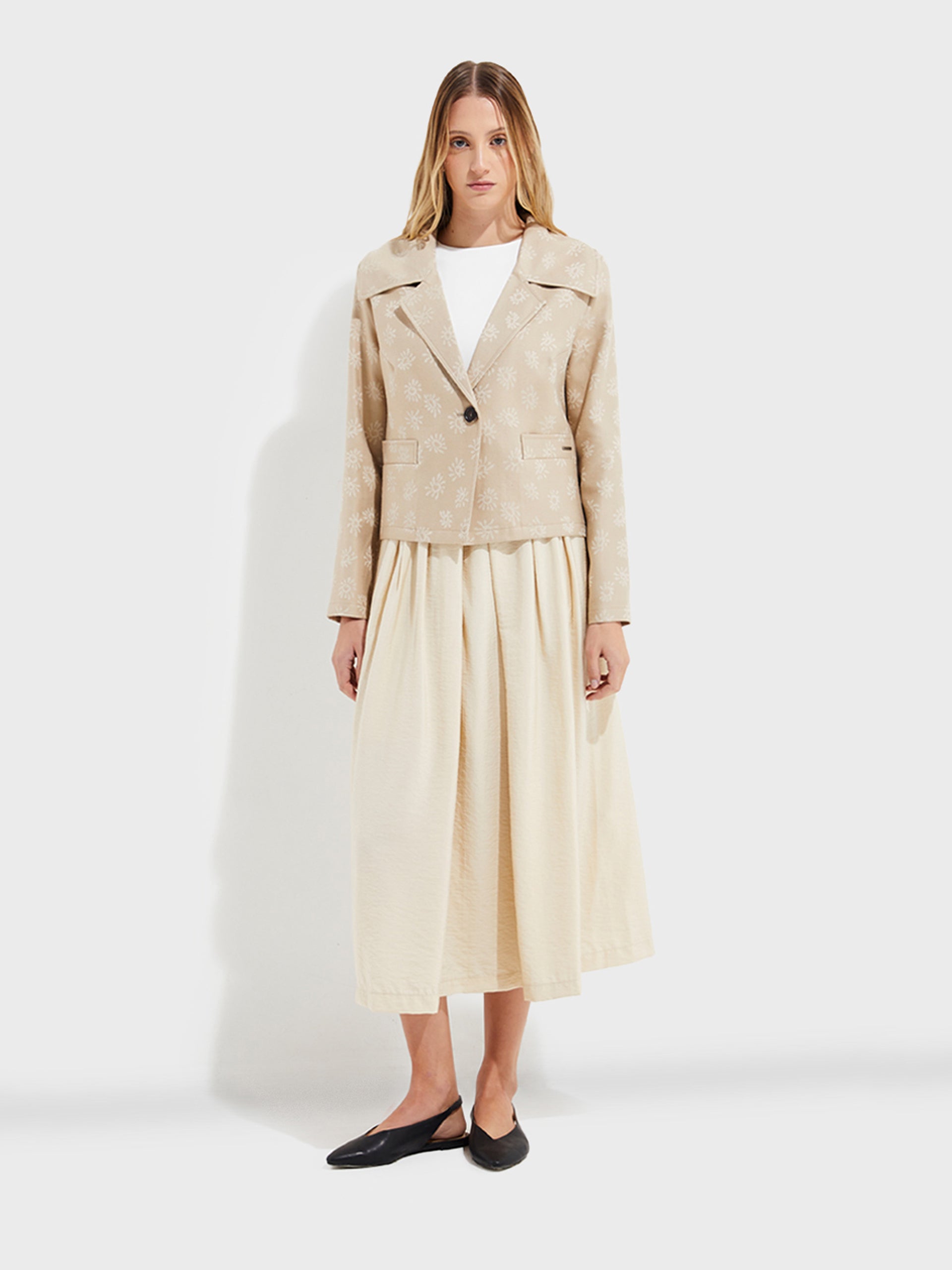 Our Ytaparica coat, made of bamboo, baby alpaca and silk, is a garment that combines perfectly with any outfit. Its classic cut and elegant flower details make it a unique item. The wide collar extending to the shoulders, with lapel, adds a sophisticated touch. | Predominant material: Bamboo