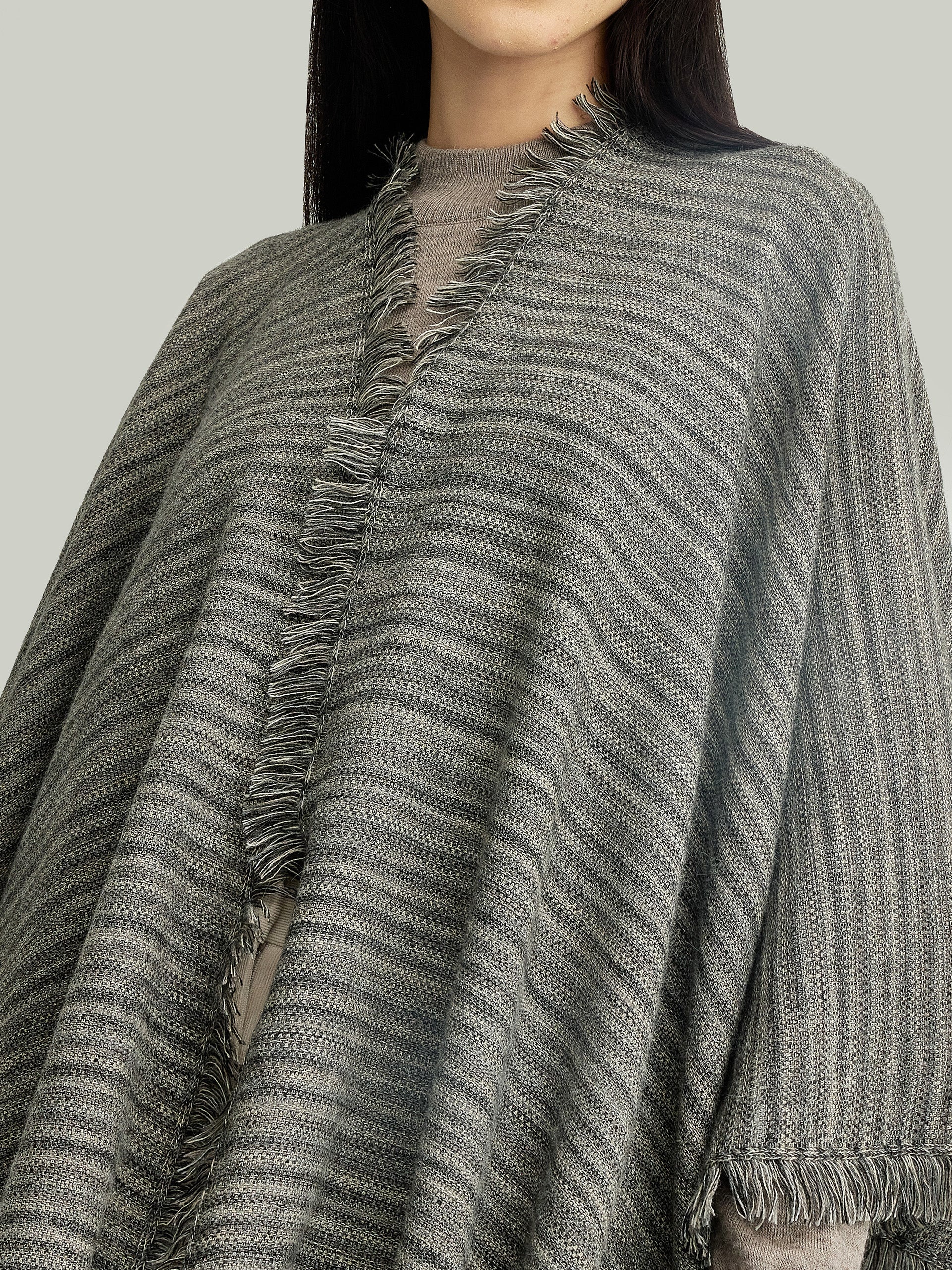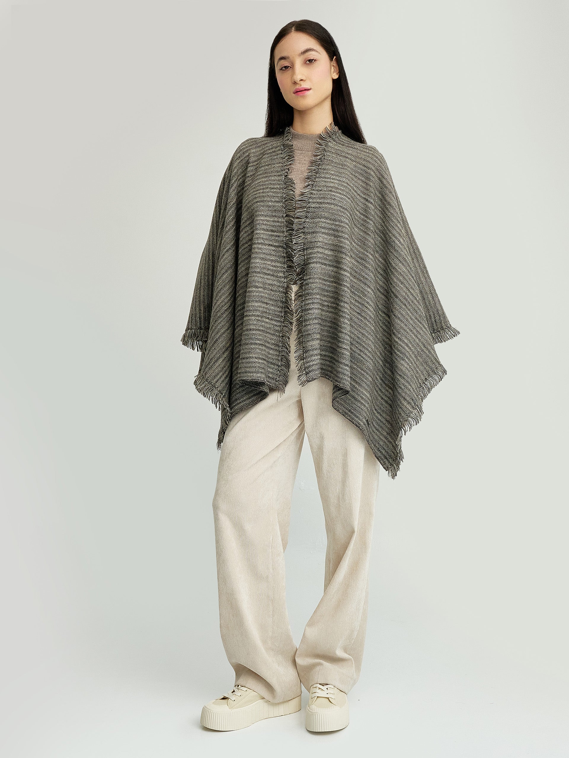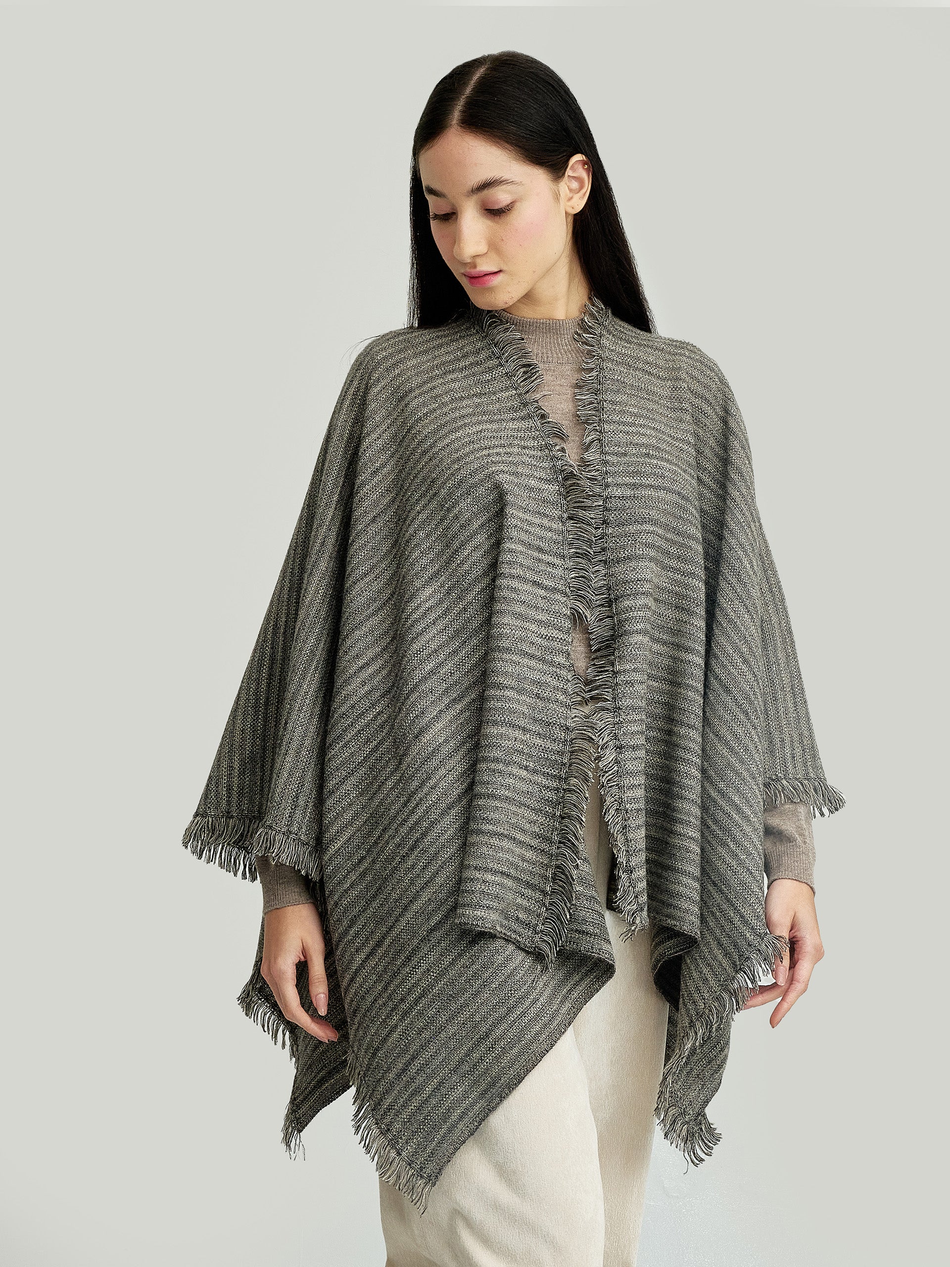 The Yudith poncho with striped design is a must-have piece in your closet this winter. With its versatility, you can easily combine it for any occasion. Available in two beautiful shades, this unique design is made entirely of fine baby alpaca fiber, guaranteeing both style and warmth. | Material predominante: Baby Alpaca