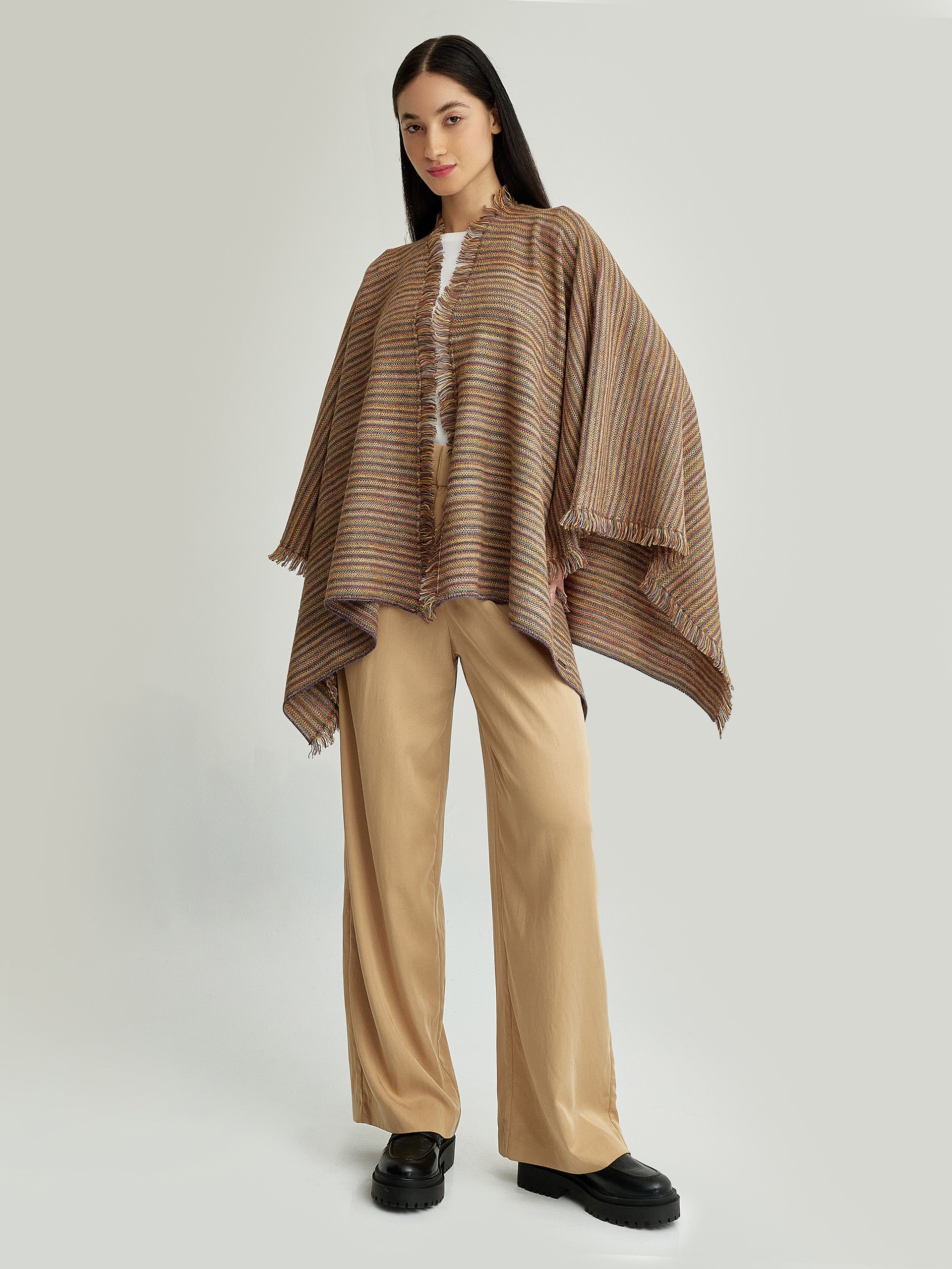 The Yudith poncho with striped design is a must-have piece in your closet this winter. With its versatility, you can easily combine it for any occasion. Available in two beautiful shades, this unique design is made entirely of fine baby alpaca fiber, guaranteeing both style and warmth. | Material predominante: Baby Alpaca