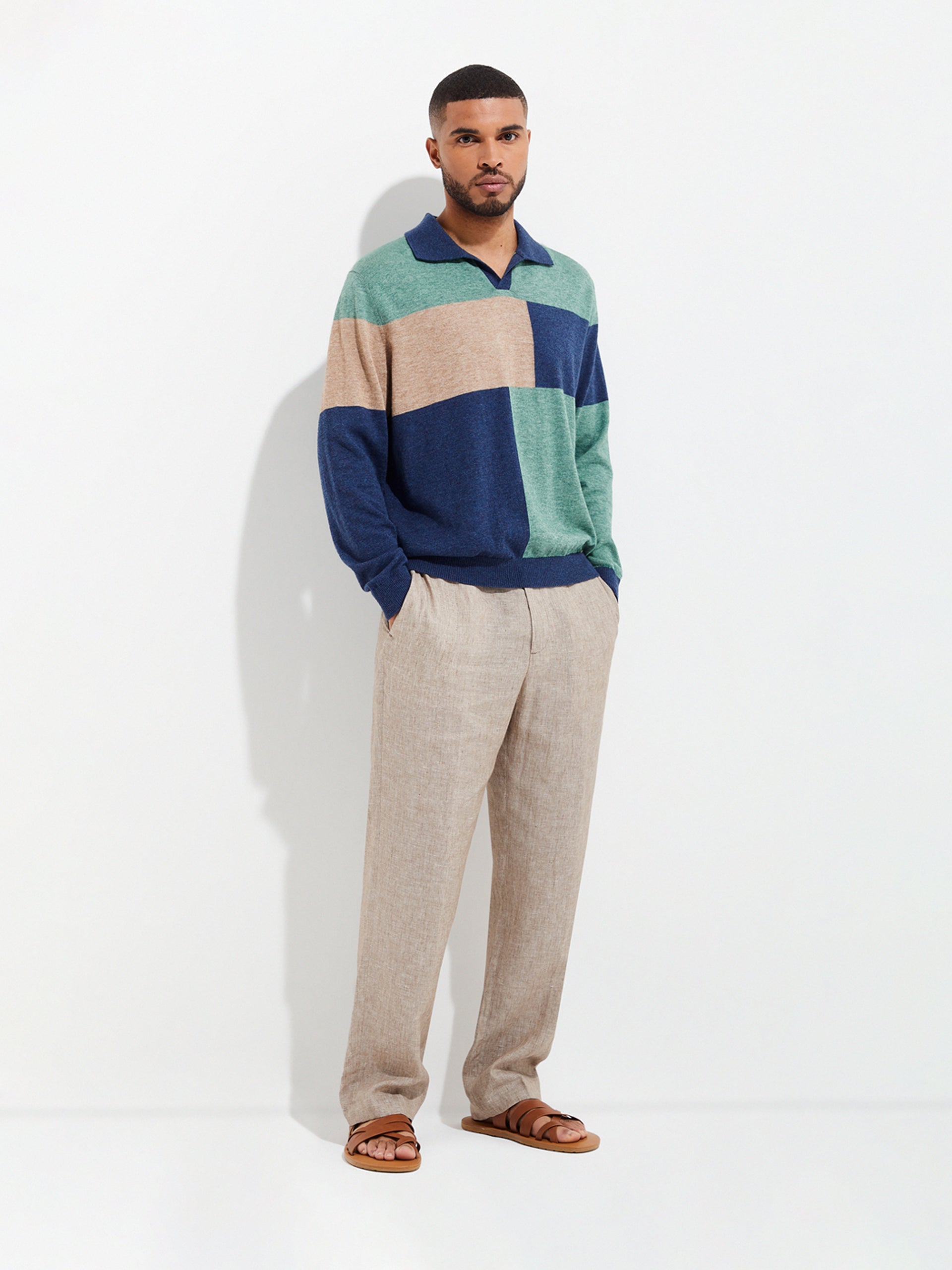 The Ivan sweater, with shirt-type collar and colorful checkered design, is made of organic cotton and baby alpaca for superior softness. It has bands at the waist and cuffs for a perfect fit. Available in two color combinations, it is ideal for a casual and modern look. | Predominant material: Cotton