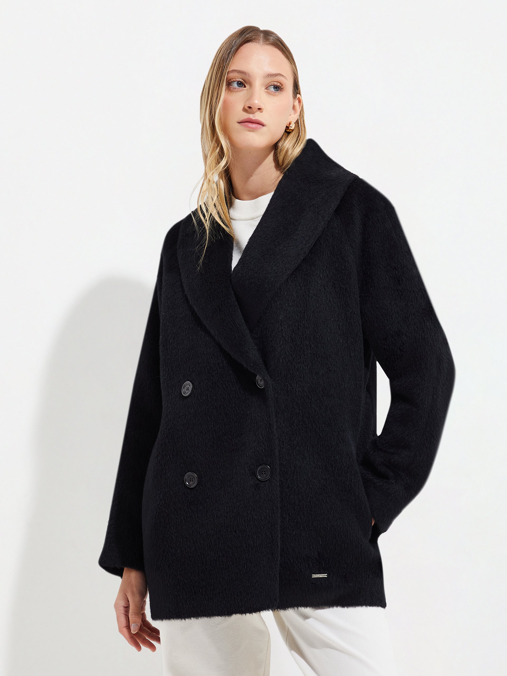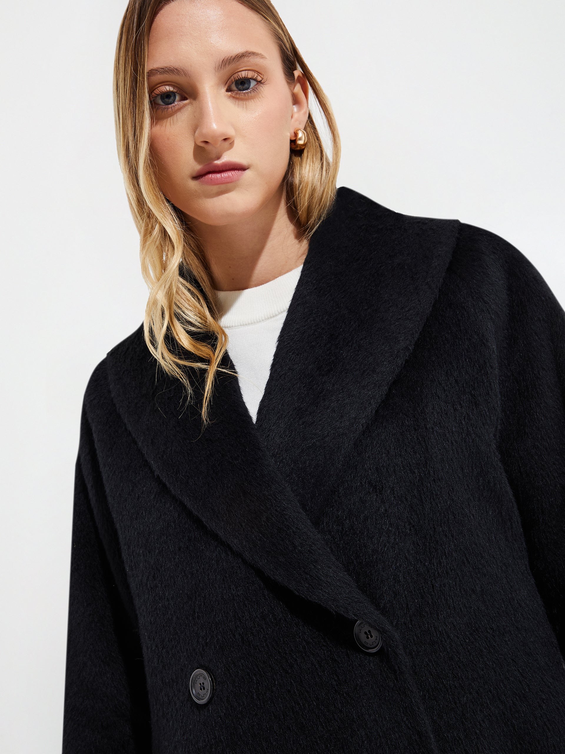 Discover the distinction of the Yvanka coat, offered in two natural tones. Its unique texture and shine come from the exquisite combination of Suri alpaca fiber and wool. Detailed with buttons, this elegant garment is a statement of sophisticated and refined style. | Material predominante: Alpaca Suri