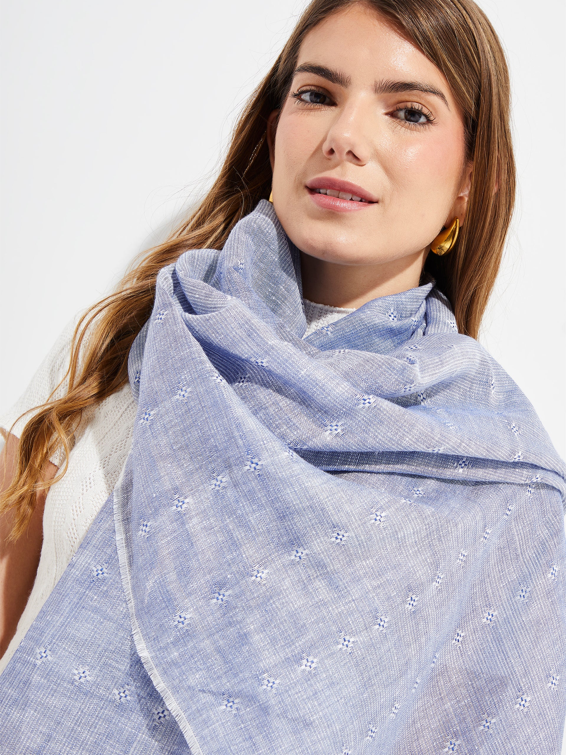 The Yvory stole is made from an exquisite combination of baby alpaca, silk and linen, which provides a soft and light texture. Available in three shades. Its design stands out for the discreet lines that run through the garment, providing a minimalist and refined style. It is ideal for those looking for a versatile accessory that combines comfort and timeless elegance. | Predominant material: Linen