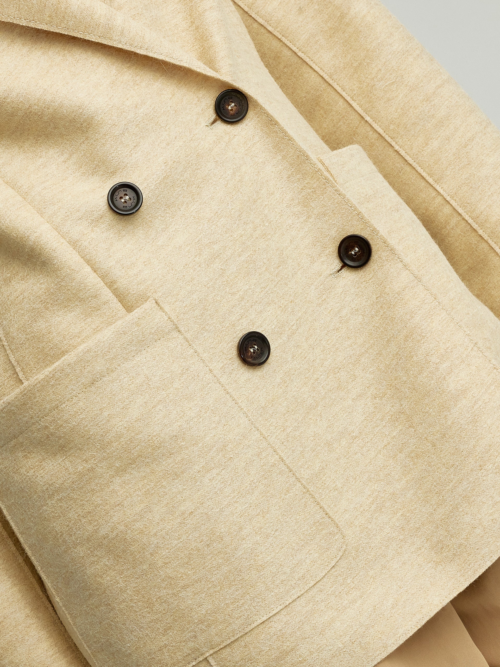 Made of alpaca and wool, this coat offers a combination of incomparable luxury and warmth. Its double-breasted design and buttons add a touch of sophistication to your style. Available in two carefully selected tones, it is the perfect item to enhance any outfit whether for a formal or casual occasion. Dare to stand out! | Predominant material: Alpaca