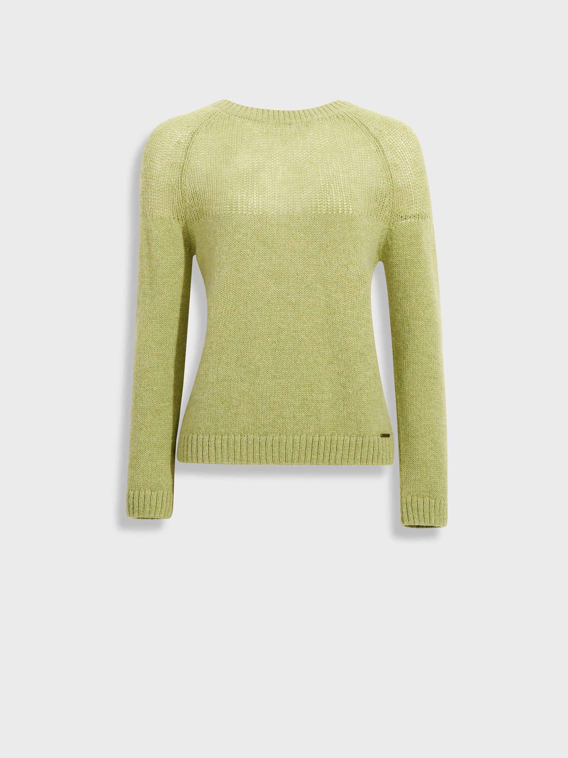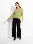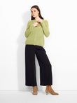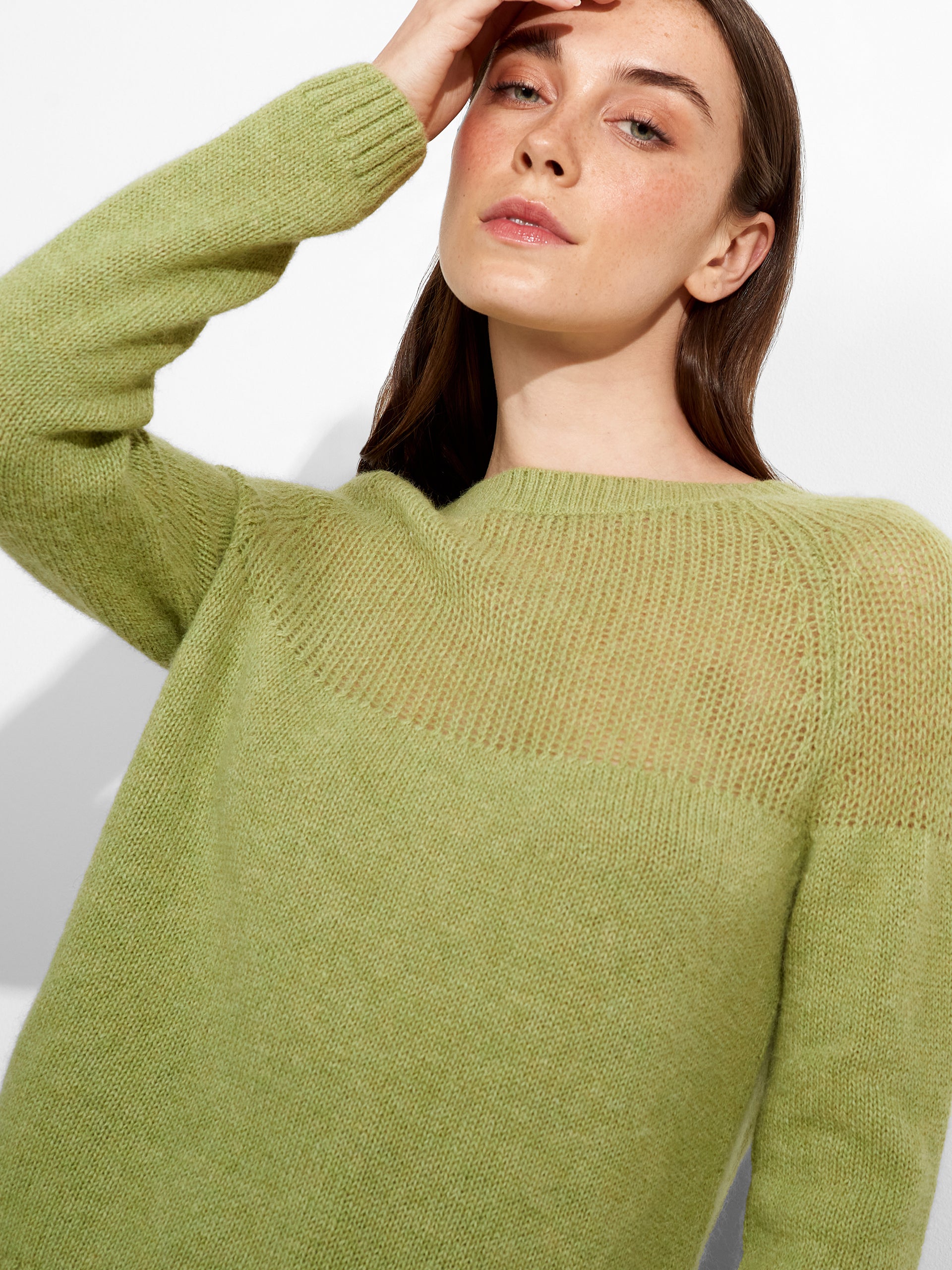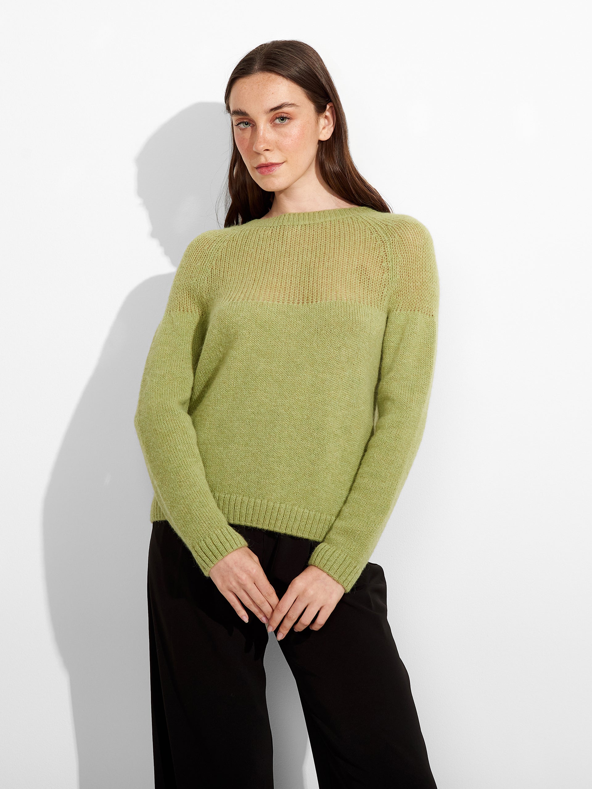 Zabine Sweater in green tone, convertible into a sweater or cardigan, with a closed round neck. Featuring buttons that allow its transformation. Crafted from baby alpaca, it offers warmth and exceptional softness. | Predominant material: Baby Alpaca