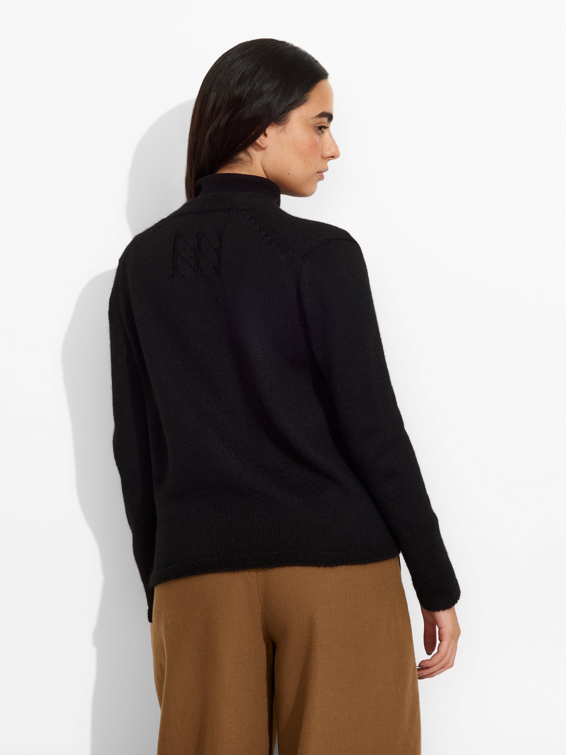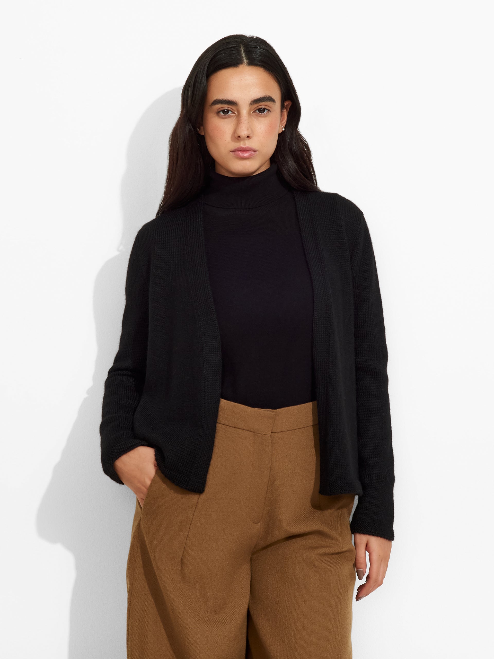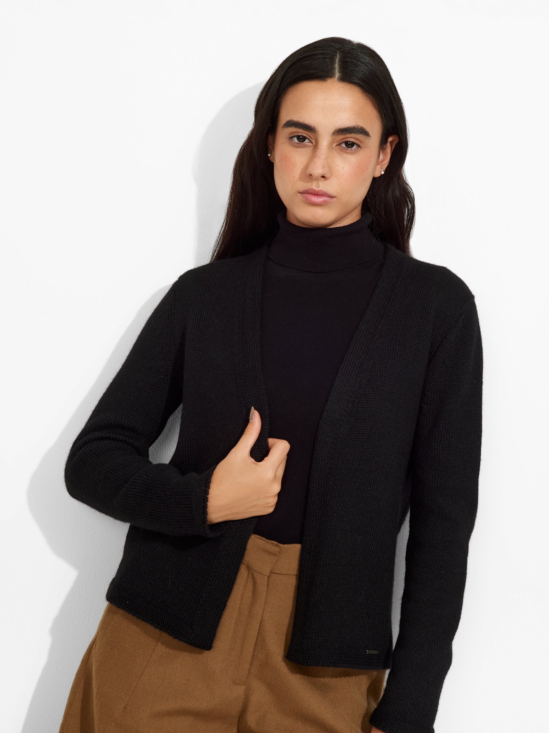 Zafiro Cardigan in black tone, crafted in plain knit with a fluid, relaxed silhouette. Made from baby alpaca, it offers warmth and exceptional softness. | Predominant material: Baby Alpaca