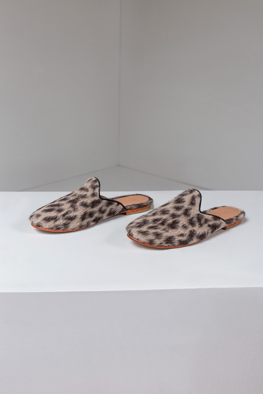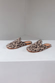 Mules, favourite for being both comfortable and timeless, free one from wearing heels and match with any outfit. Crafted with a suri alpaca fabric which features a classic animal print design. An elegant natural leather border covering the interior and insole enhances the design. Sophisticated footwear to accentuate any look.