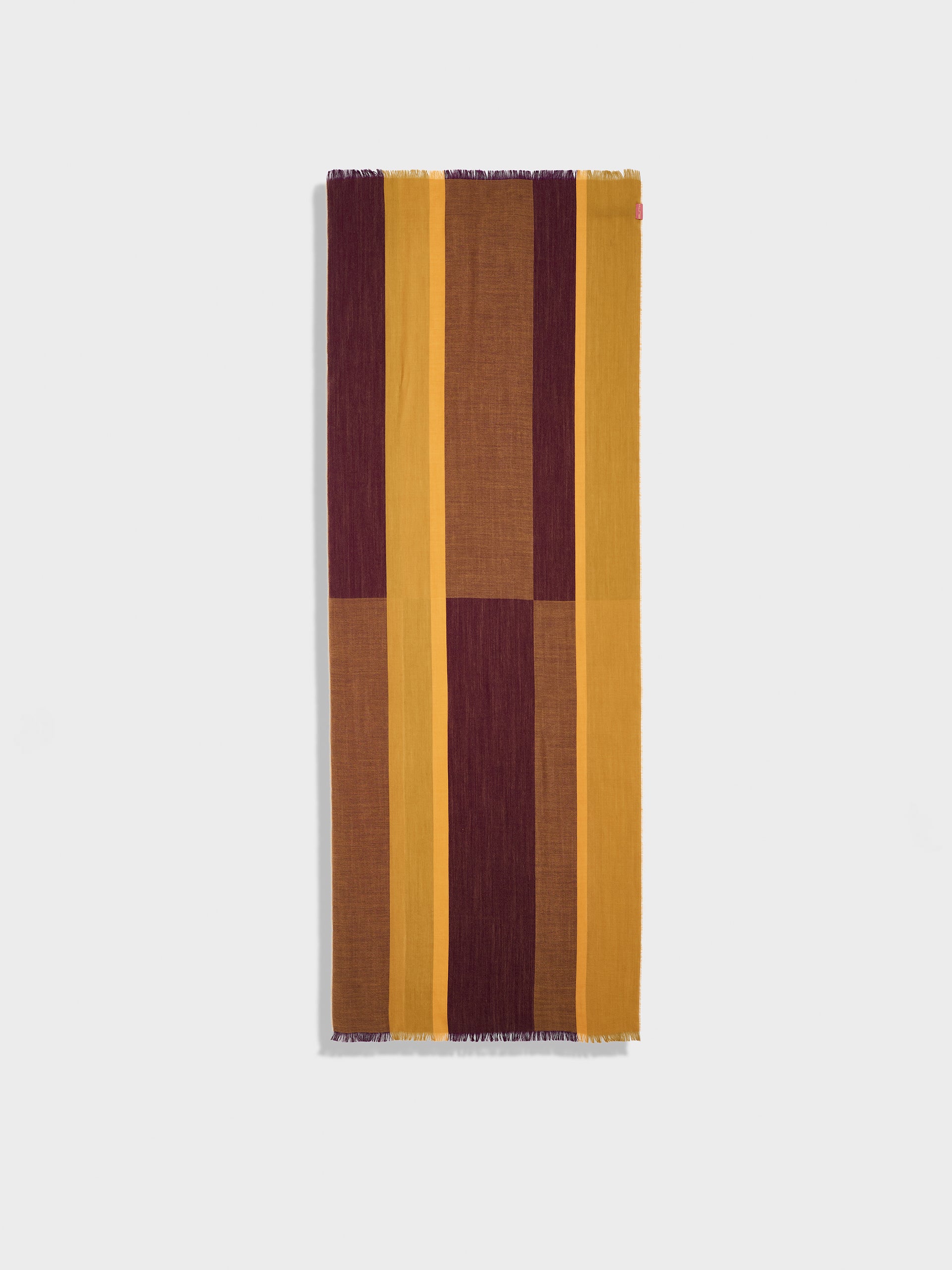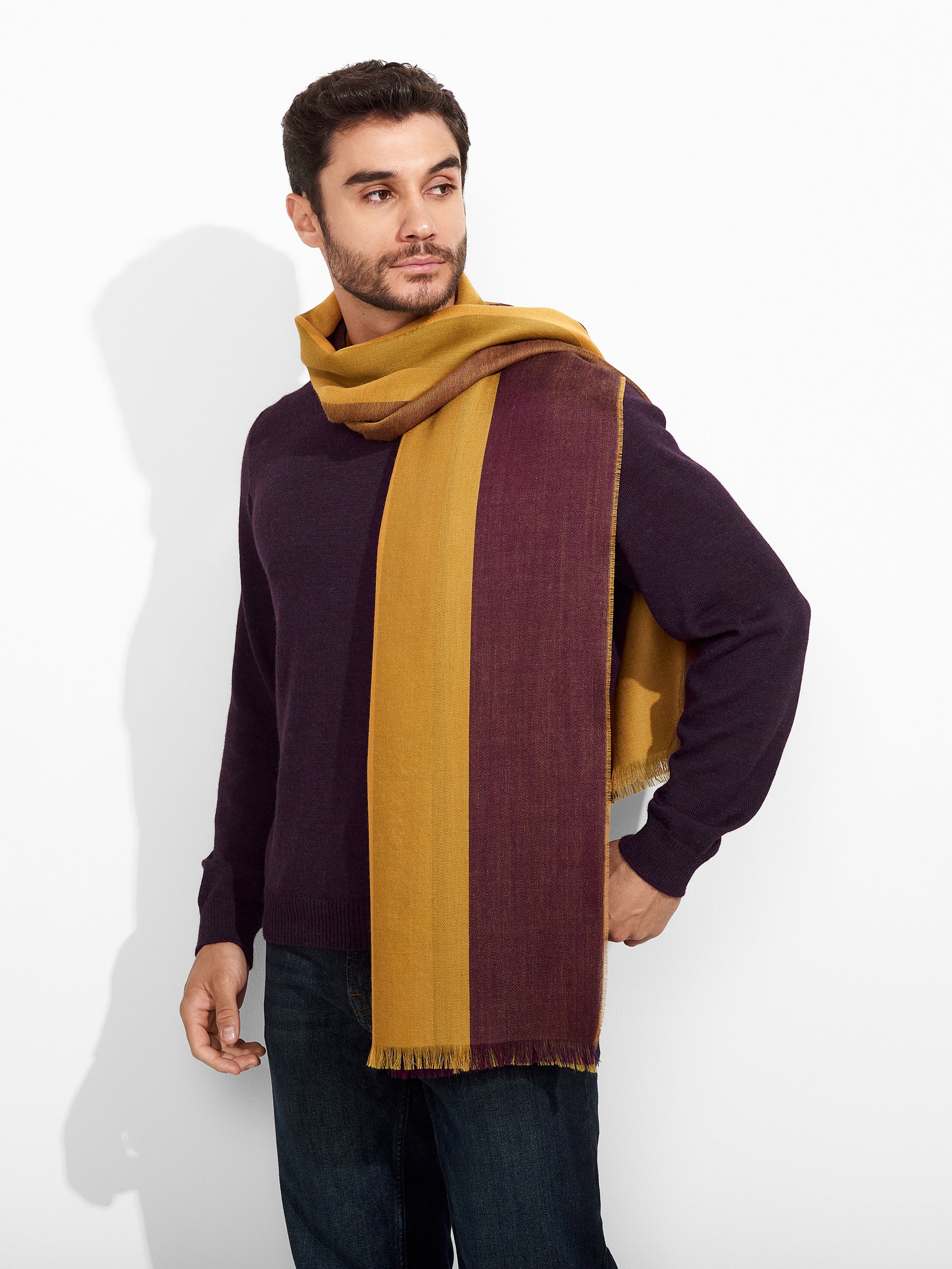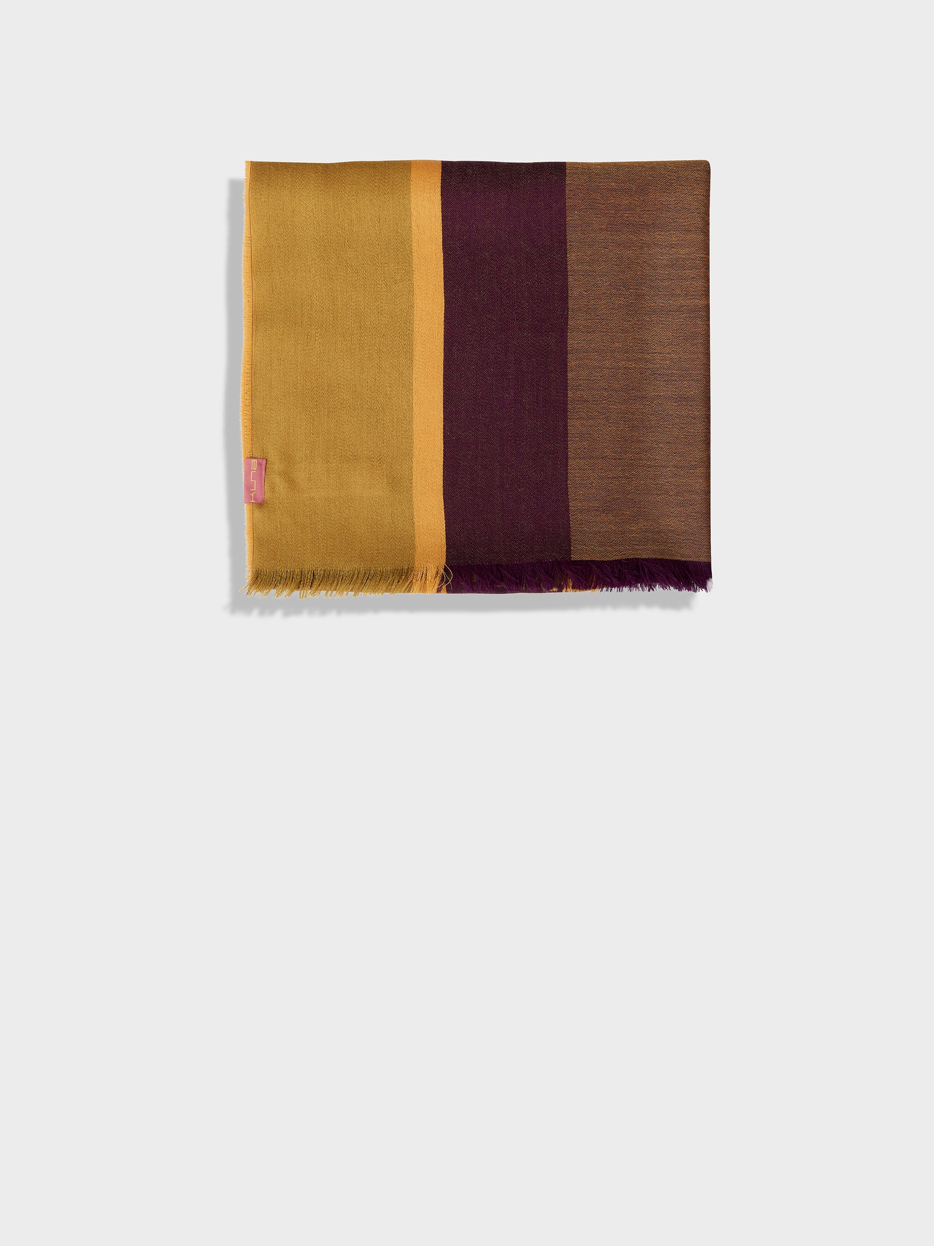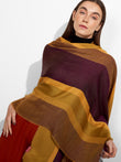 Zarry Stole in yellow tone, featuring a flat design with lateral stripes that provide a subtle contrast, and fine fringed edges. Crafted from a blend of baby alpaca and silk. | Predominant material: Baby Alpaca