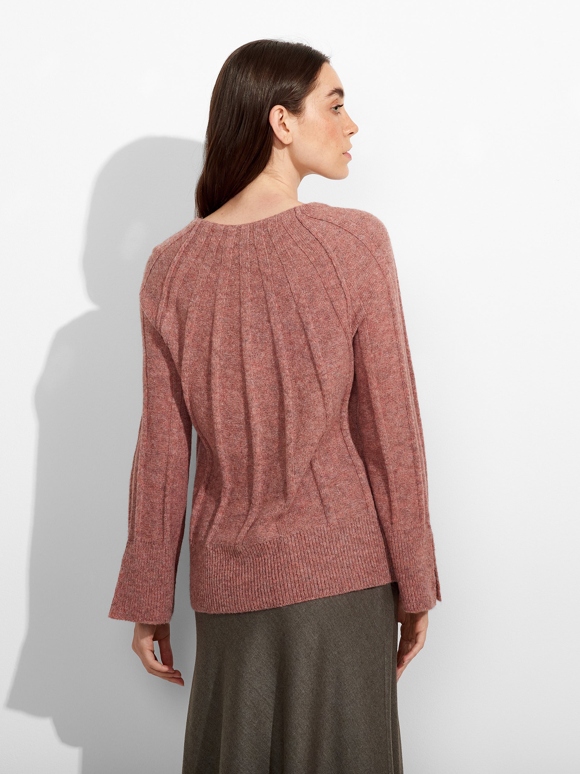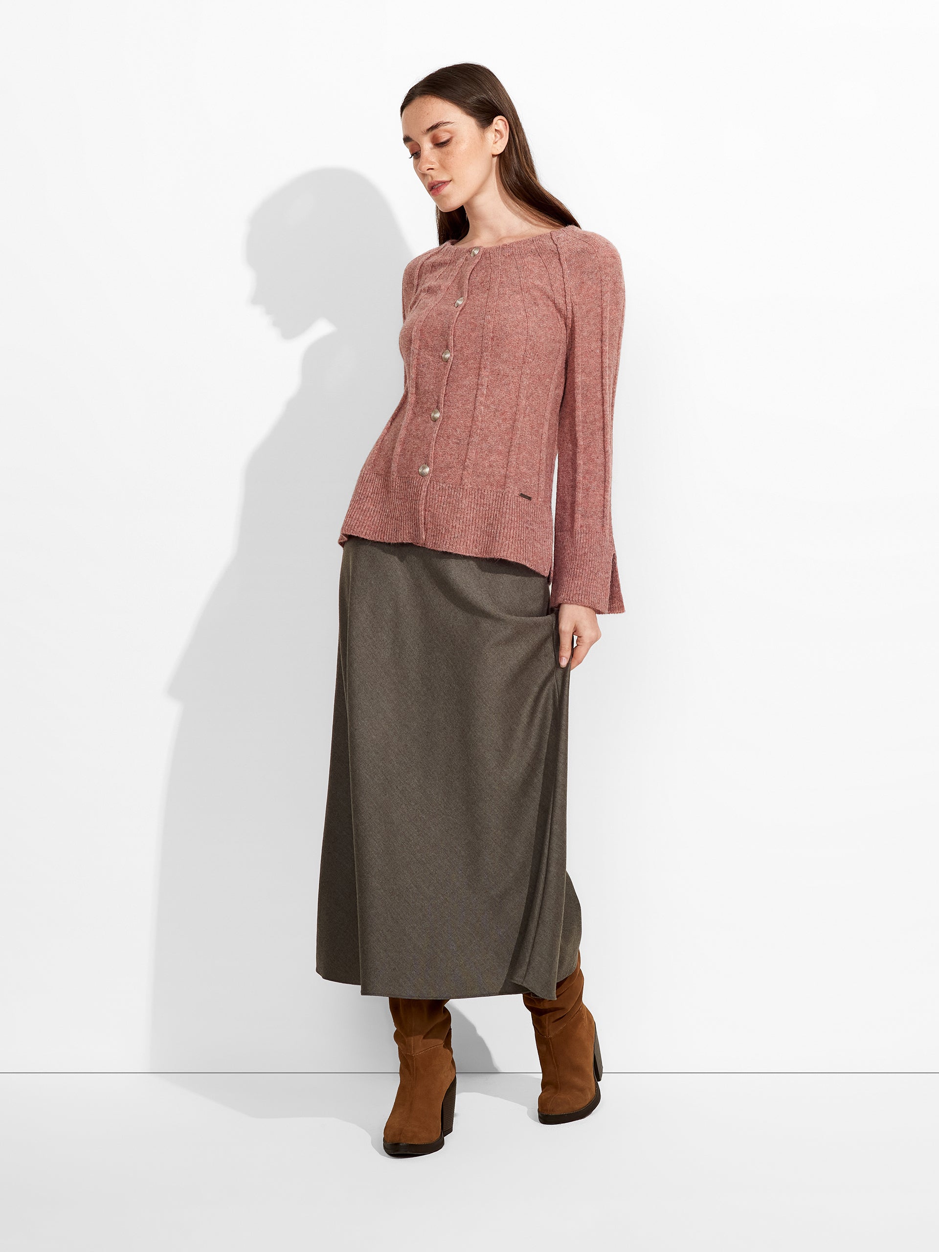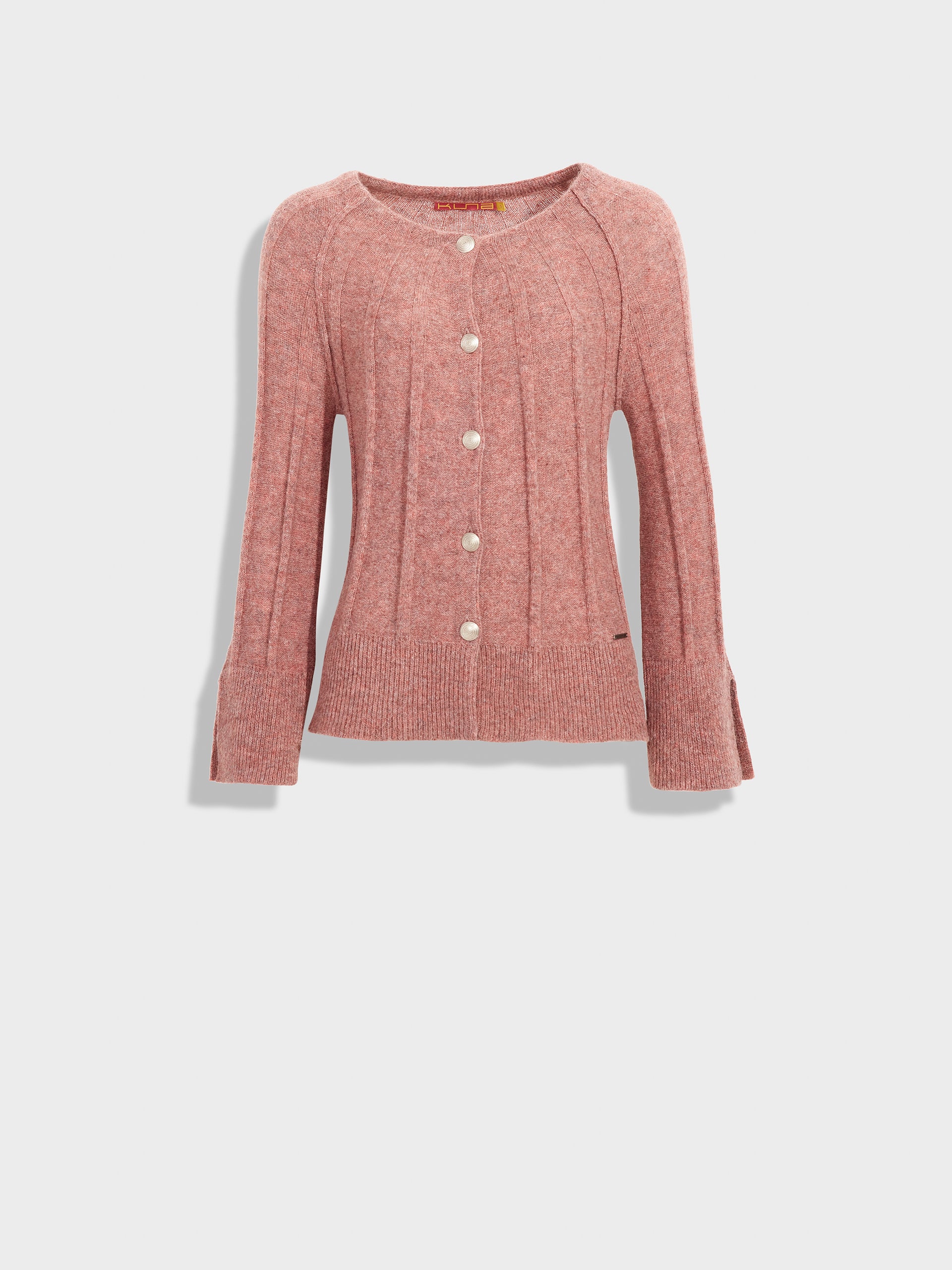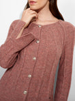 Zephir Cardigan in pink tone, designed with a round neck and metal buttons. Crafted from baby alpaca, it offers warmth and exceptional softness. | Predominant material: Baby Alpaca