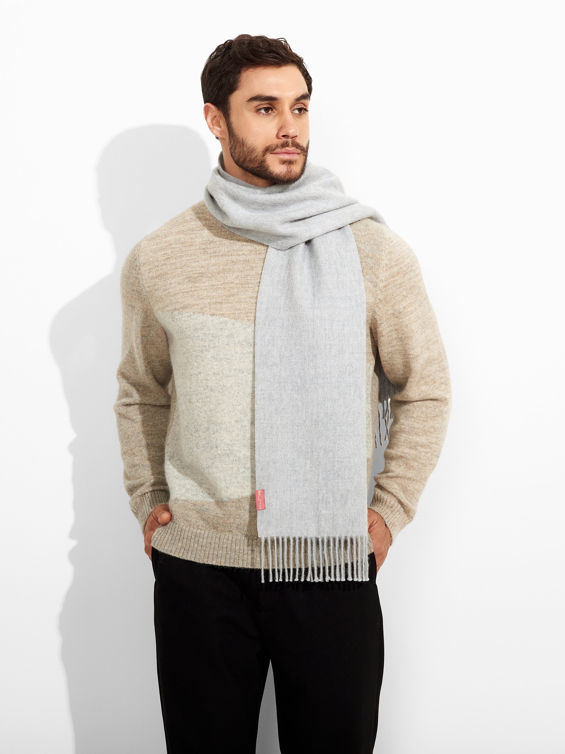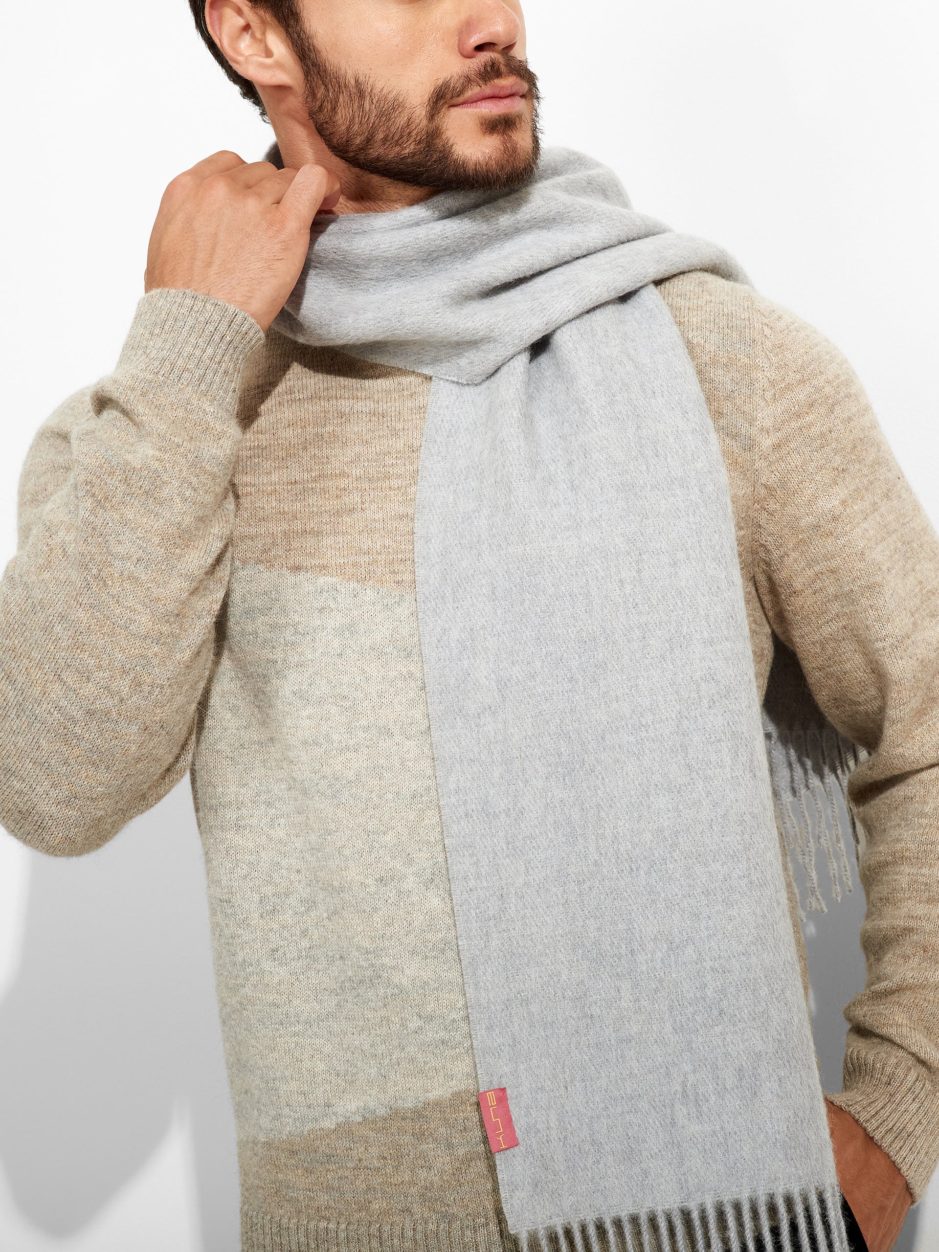 Zeta Scarf in gray tone, designed in solid color with thick fringed edges. Crafted from baby alpaca, it offers warmth and exceptional softness. | Predominant material: Baby Alpaca