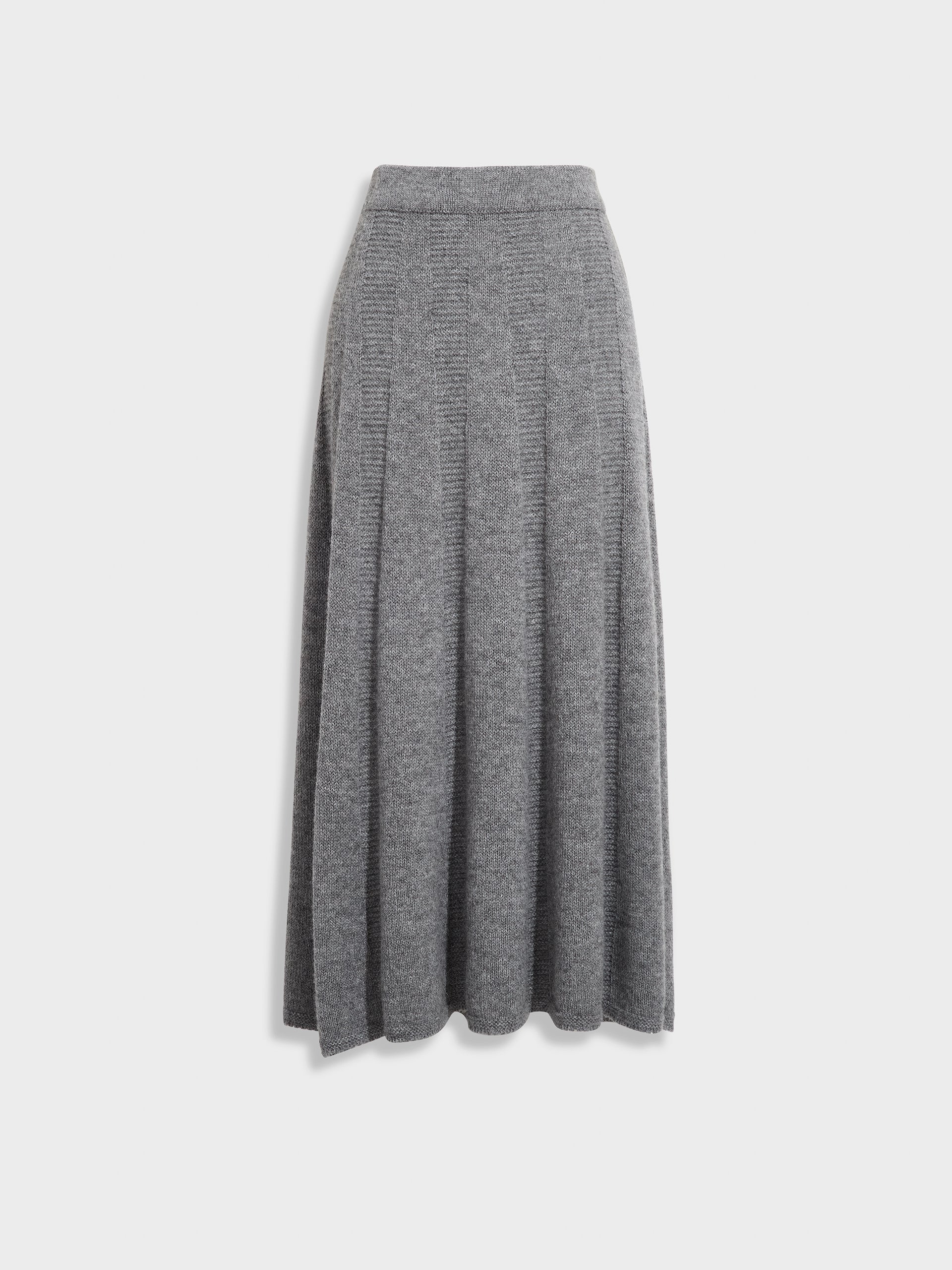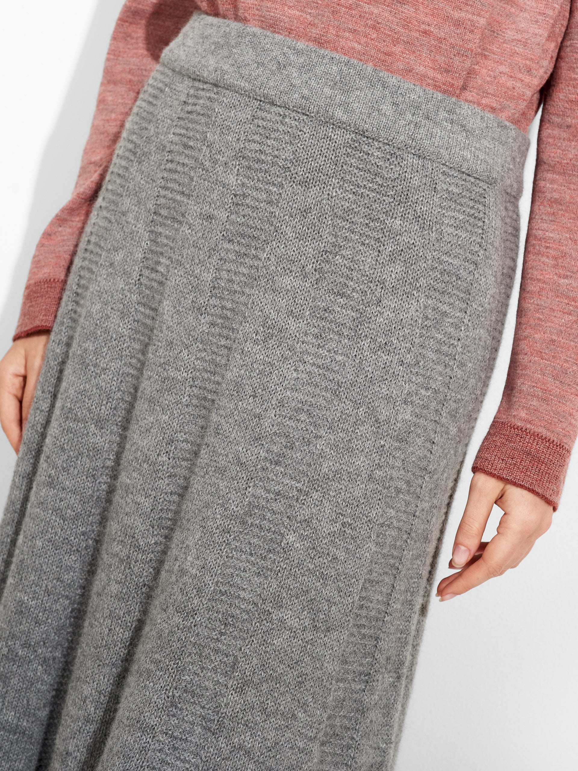 Zibilla Skirt in gray tone, featuring a flared design and A-line cut, with an elastic waistband that comfortably adapts to the body. Crafted from baby alpaca, it offers warmth and exceptional softness. | Predominant material: Baby Alpaca