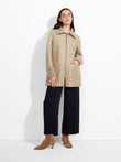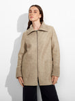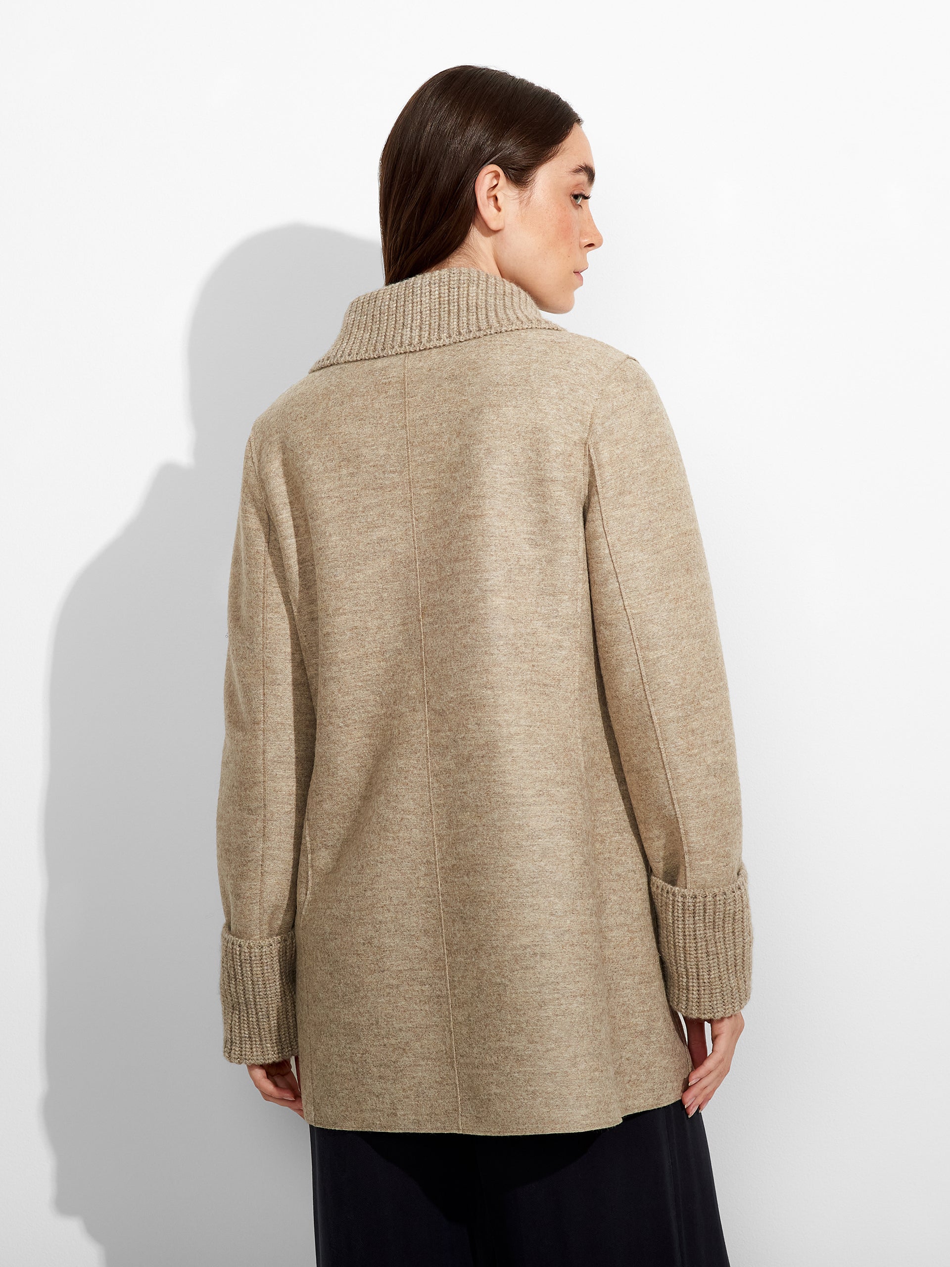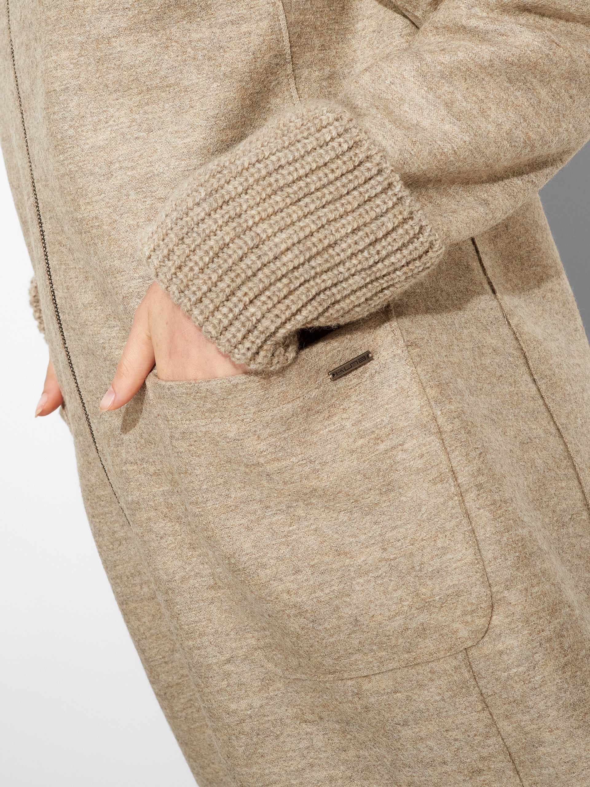 Zingaro Coat in beige tone, crafted from felted fabric without lining. It features a metal zipper, patch pockets, and knitted details in English rib stitch on the collar and cuffs. Made from alpaca and wool. | Predominant material: Alpaca