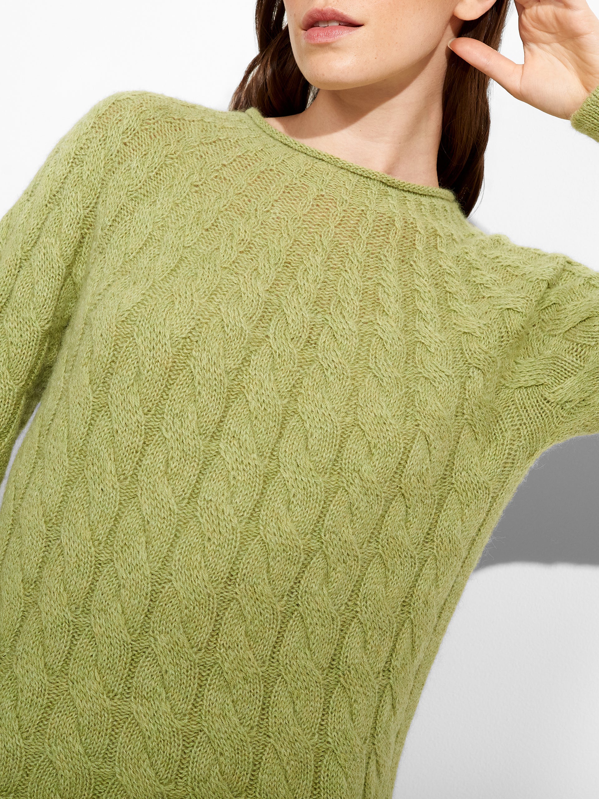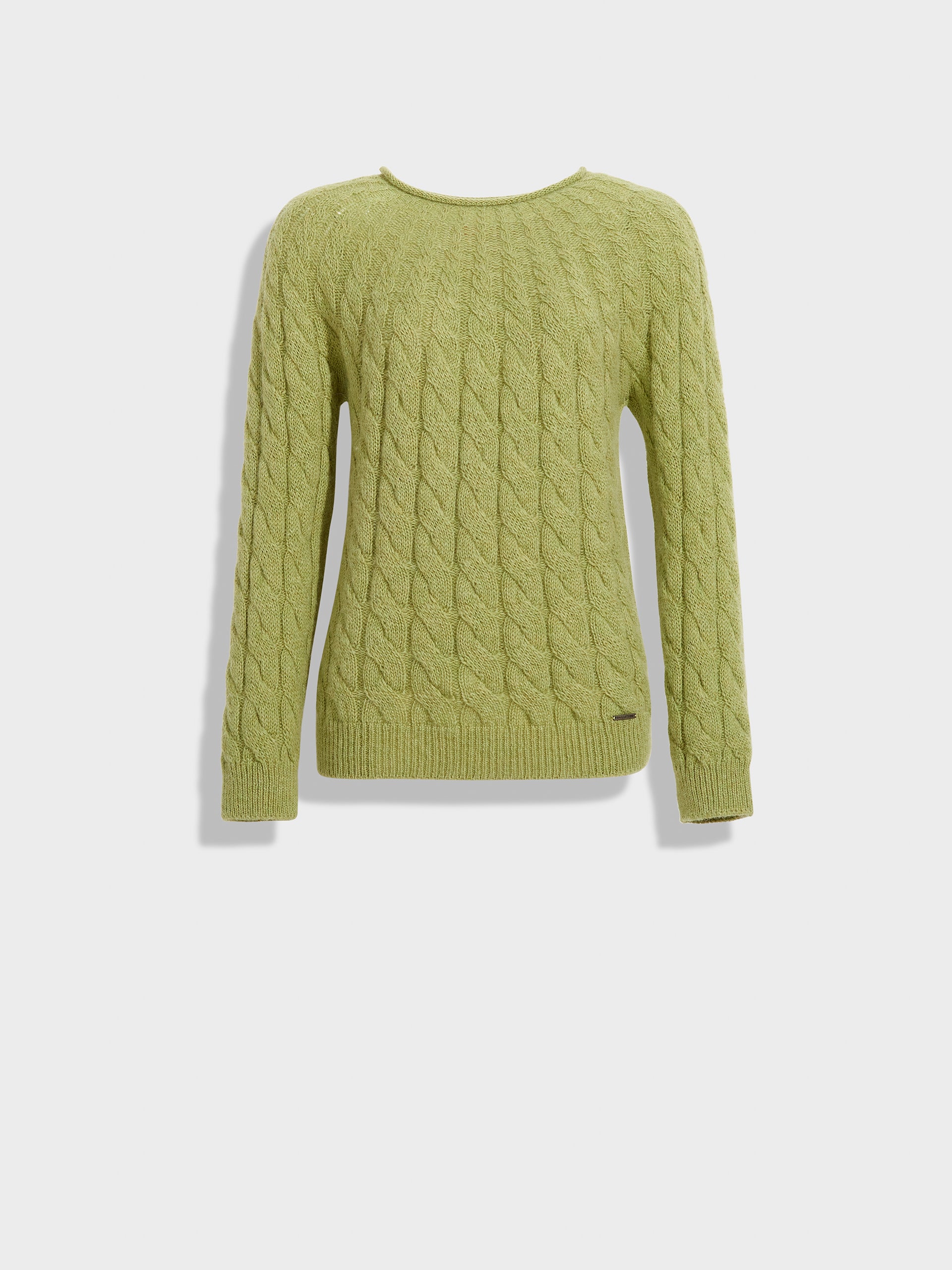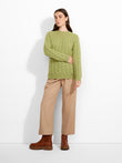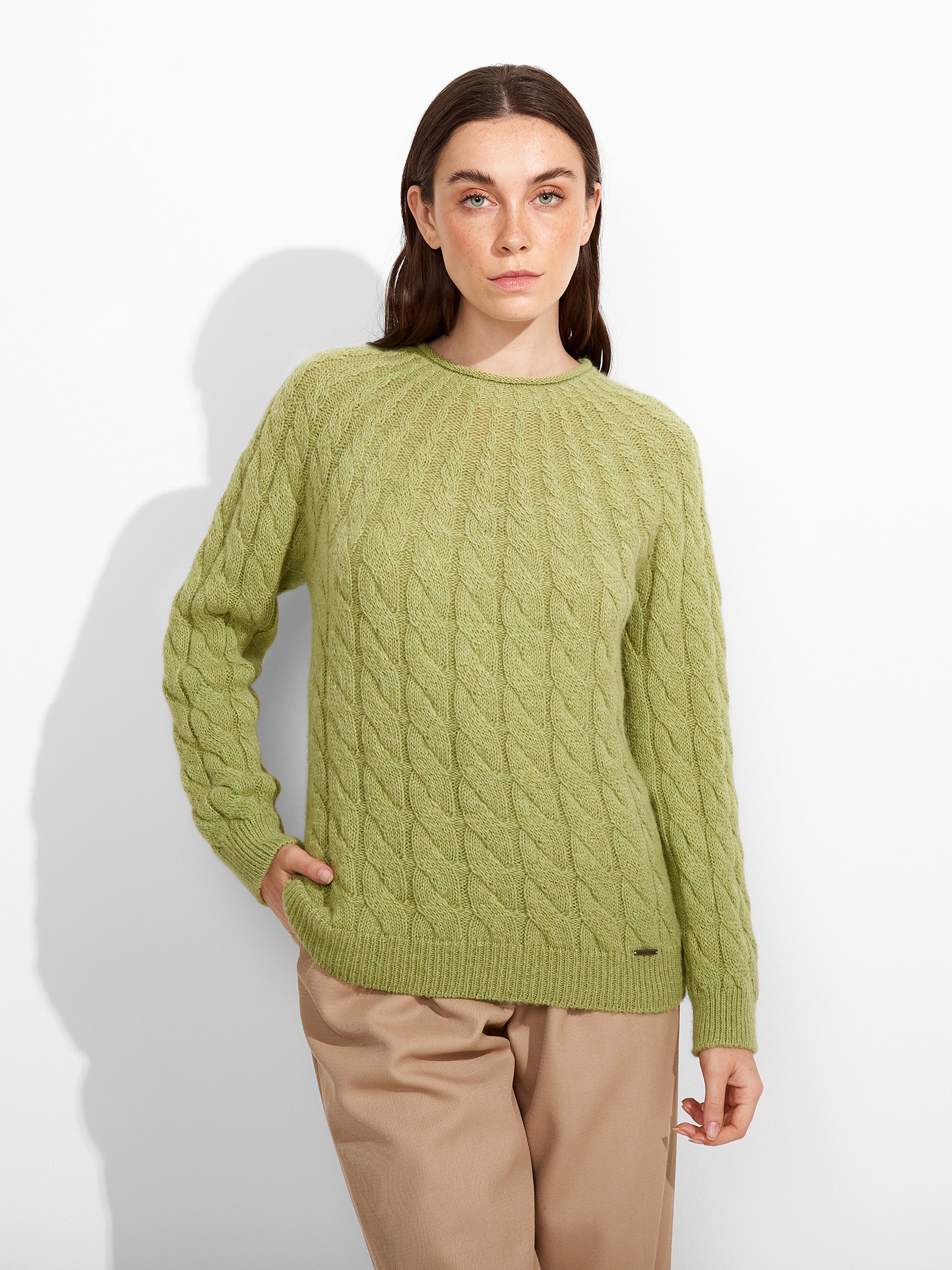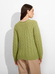 Zulema Sweater in green tone, featuring a cable knit design that adds texture to the garment. Designed with a round neck. Crafted from baby alpaca, it offers warmth and exceptional softness. | Predominant material: Baby Alpaca