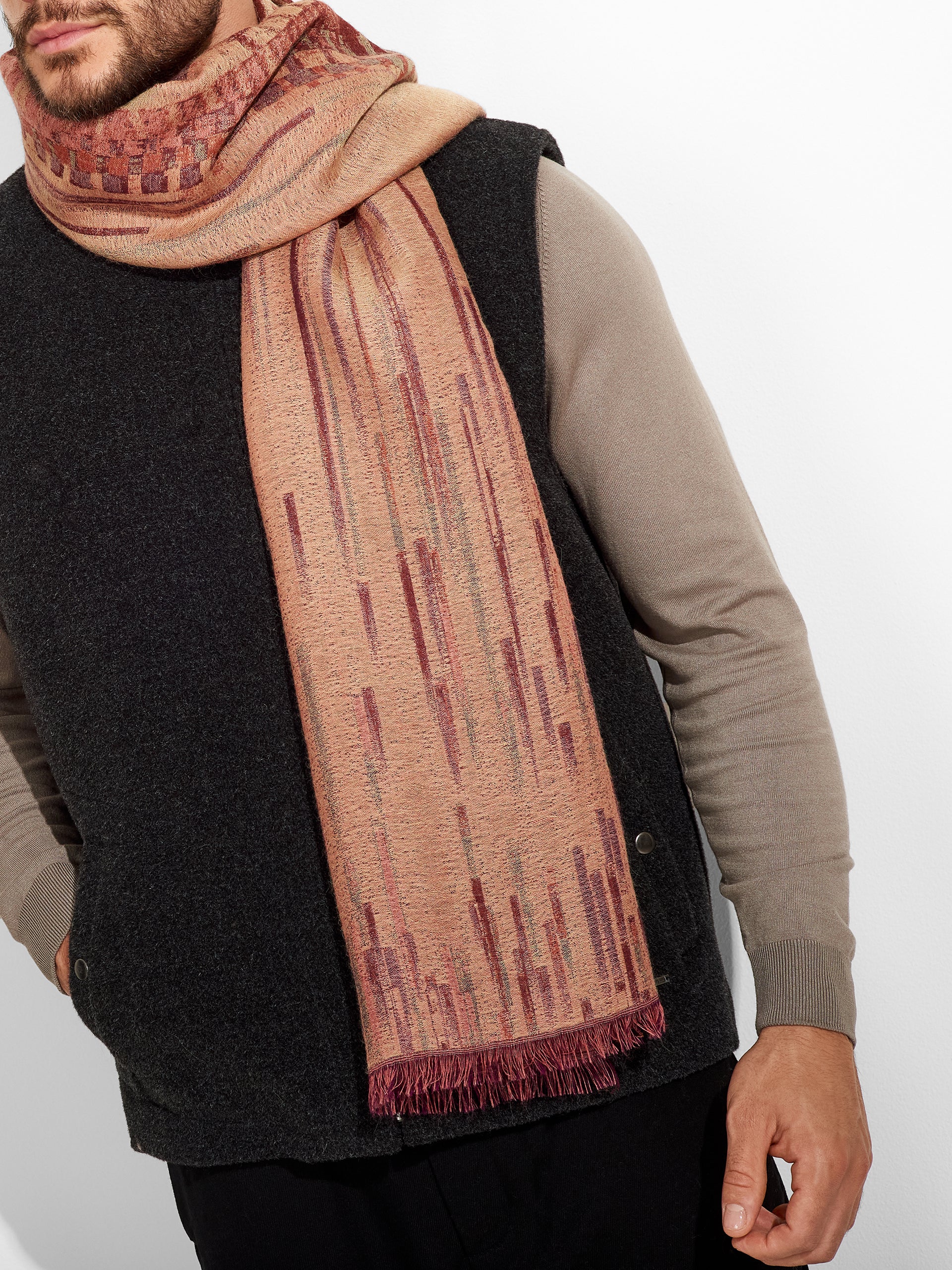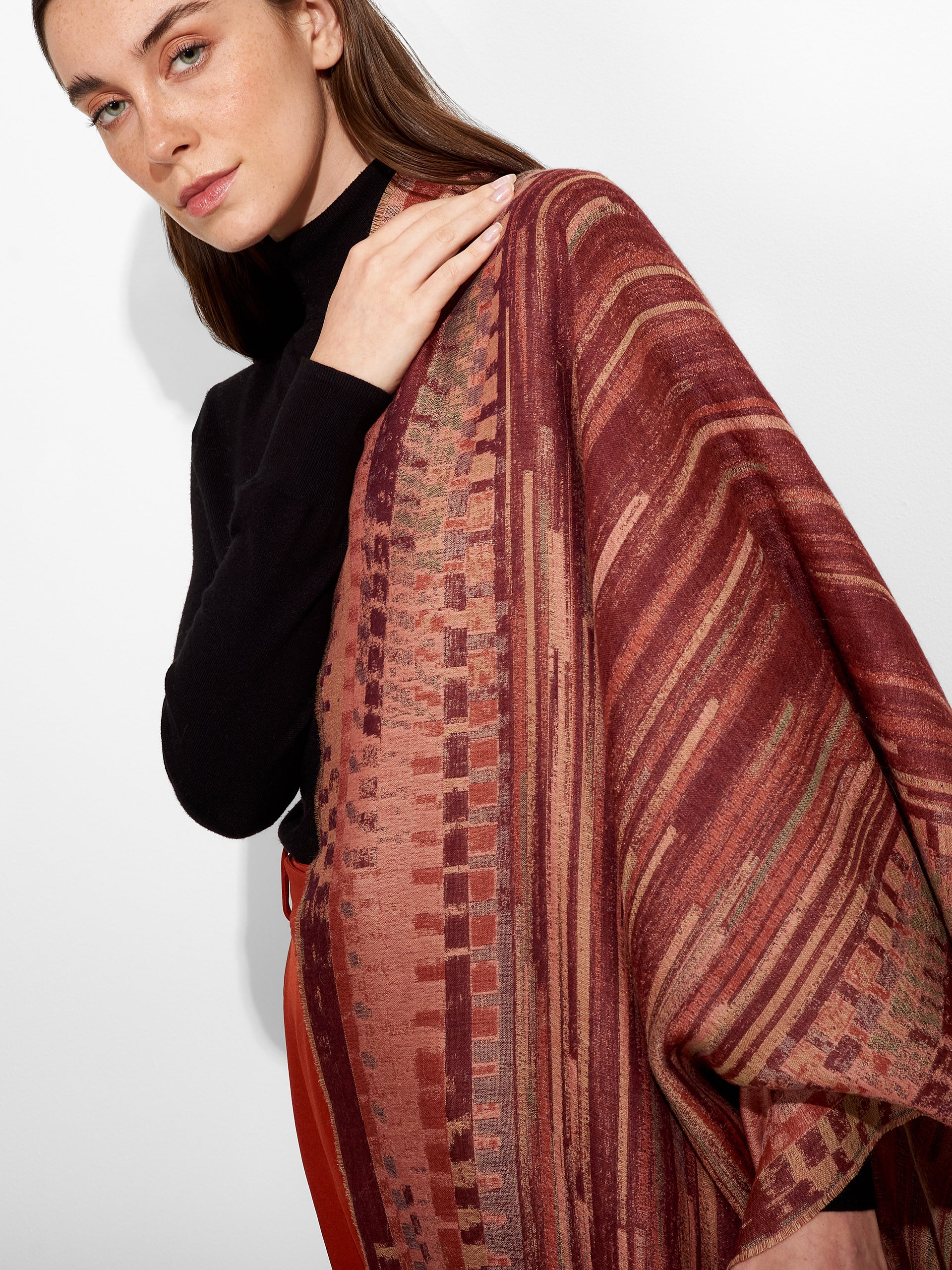 Zulett Stole in multicolor, featuring a jacquard weave with an irregular line design and fine fringed edges that complete its finish. Crafted from baby alpaca and silk. | Predominant material: Baby Alpaca