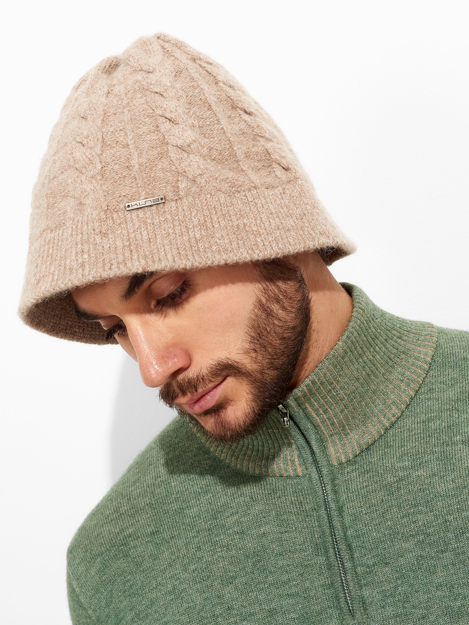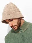 Zuzette Bucket Hat in brown tone, with a classic knit design and a braided pattern that runs across the entire surface. Crafted from baby alpaca and polyester. | Predominant material: Baby Alpaca