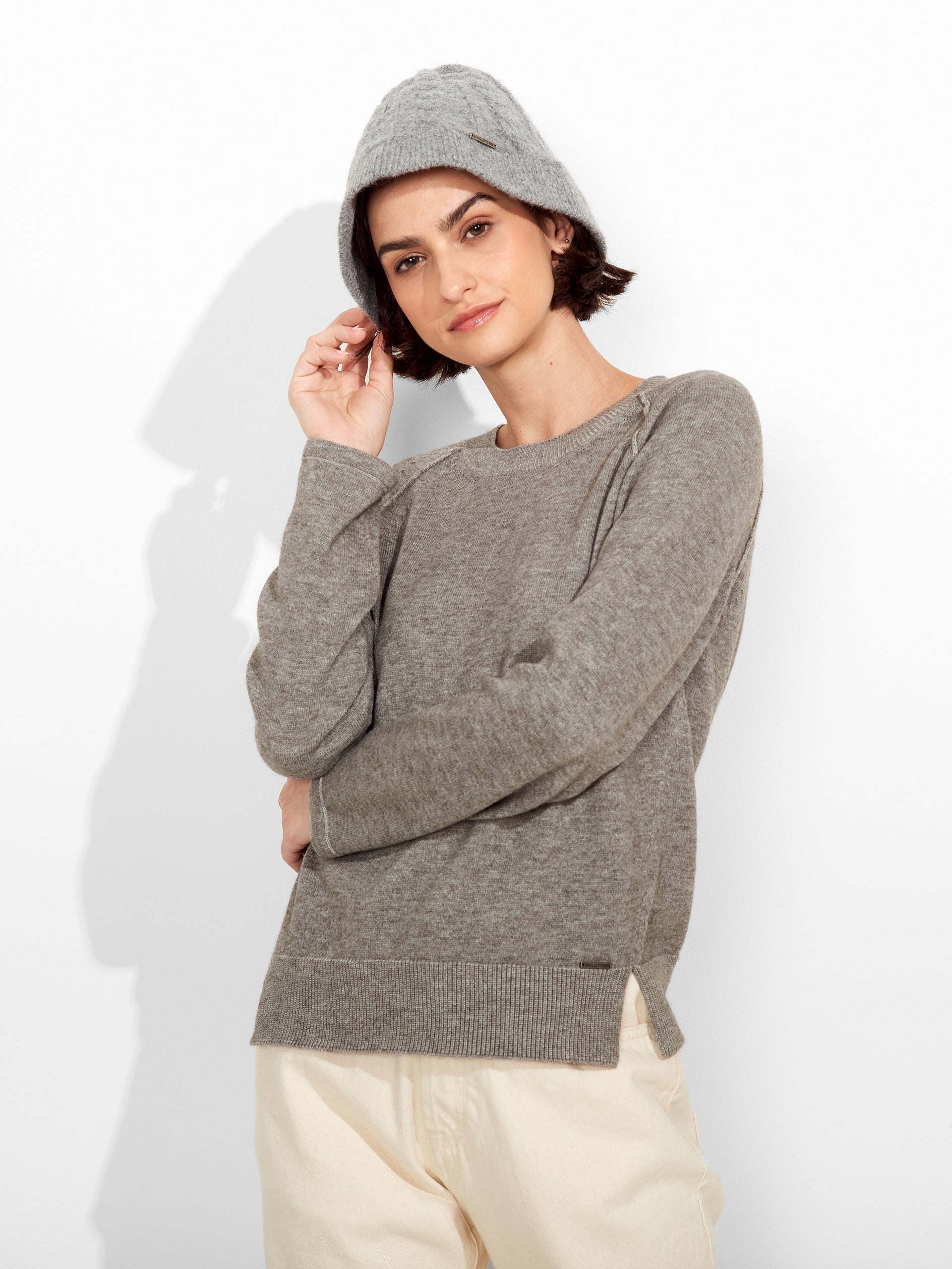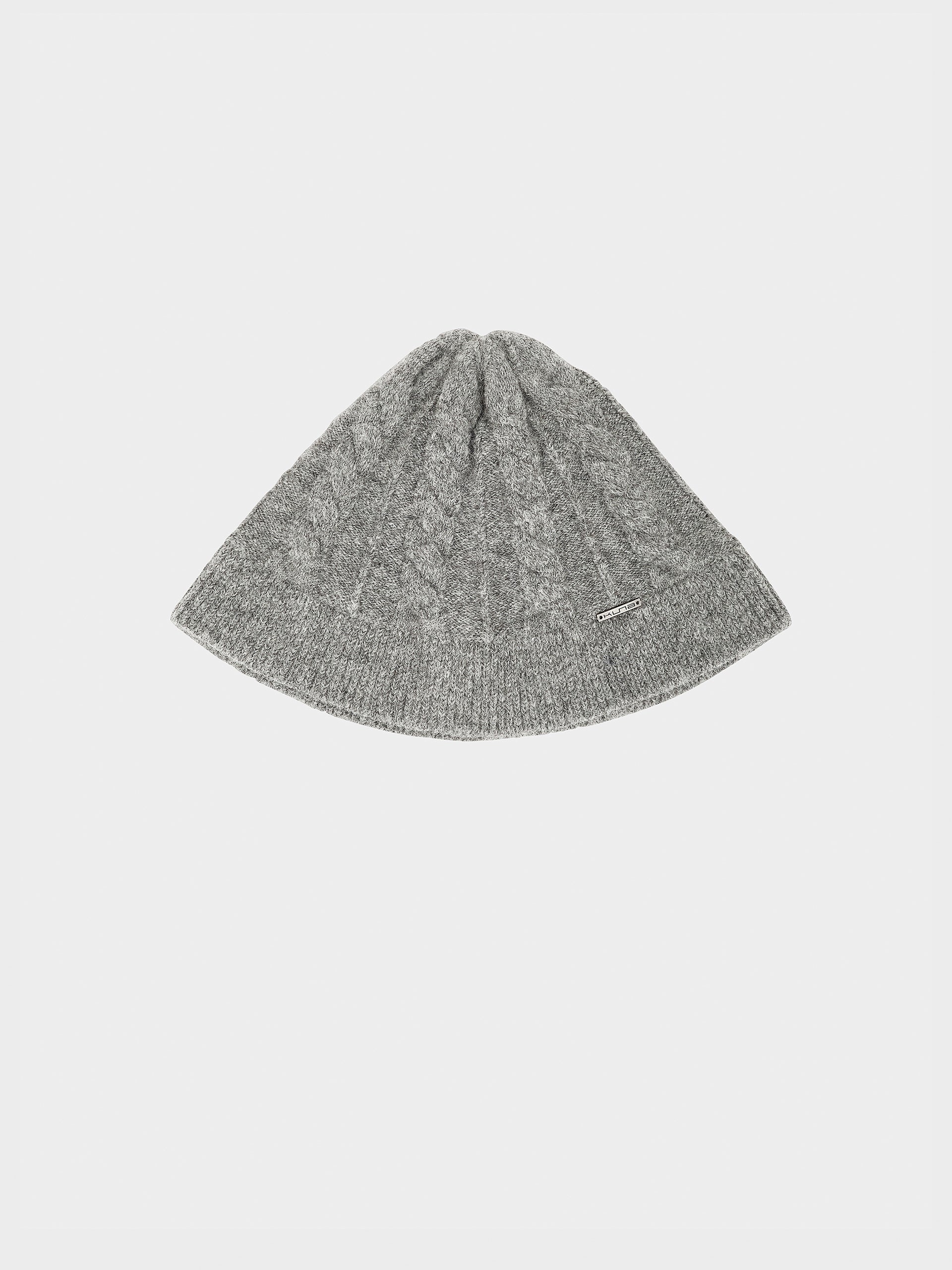 Zuzette Bucket Hat in gray tone, with a classic knit design and a braided pattern that runs across the entire surface. Crafted from baby alpaca and polyester. | Predominant material: Baby Alpaca